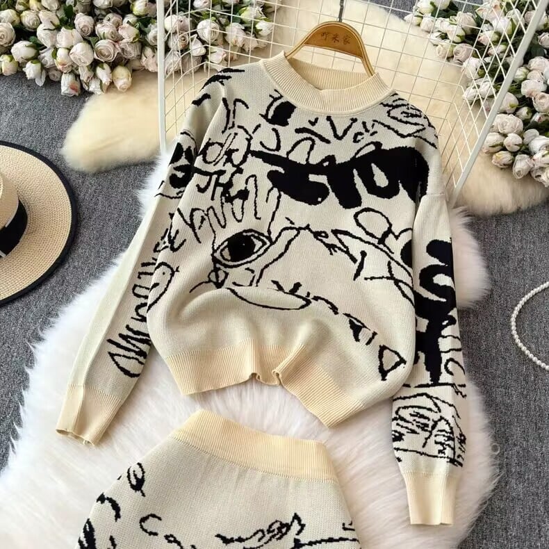 目を奪われる カジュアル トップスⅹミニスカートセットアップ<ins-10869>