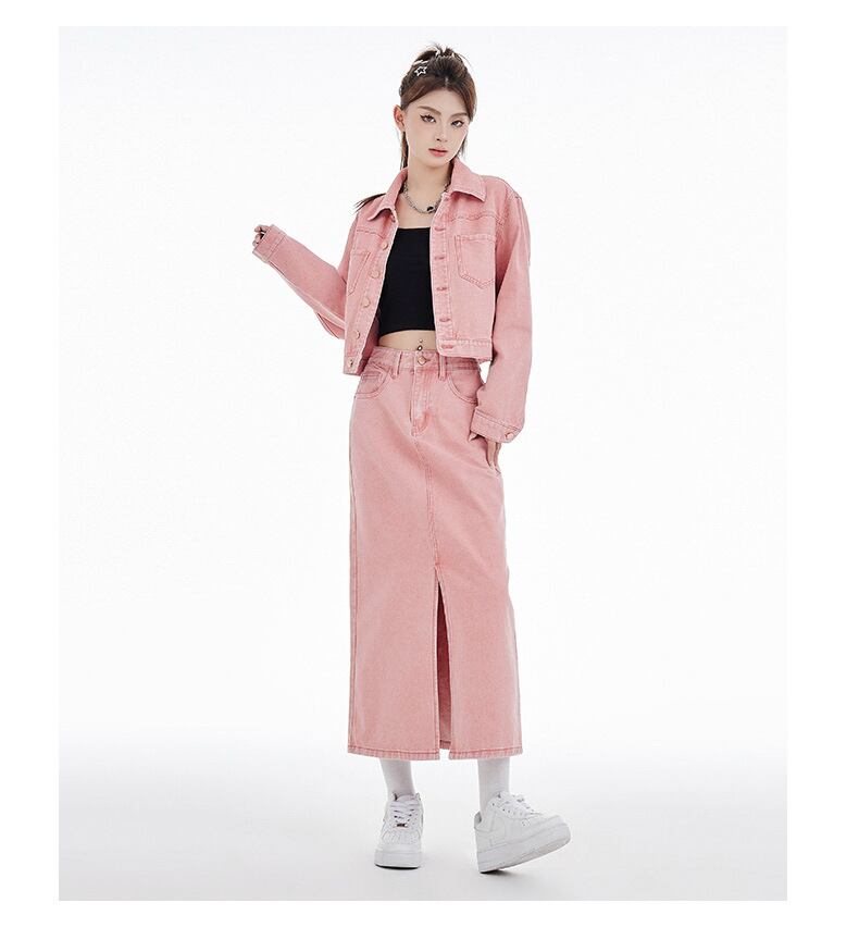 カジュアル 定番シンプル 長袖 ジャケット+スカート セットアップ <ins-10943>