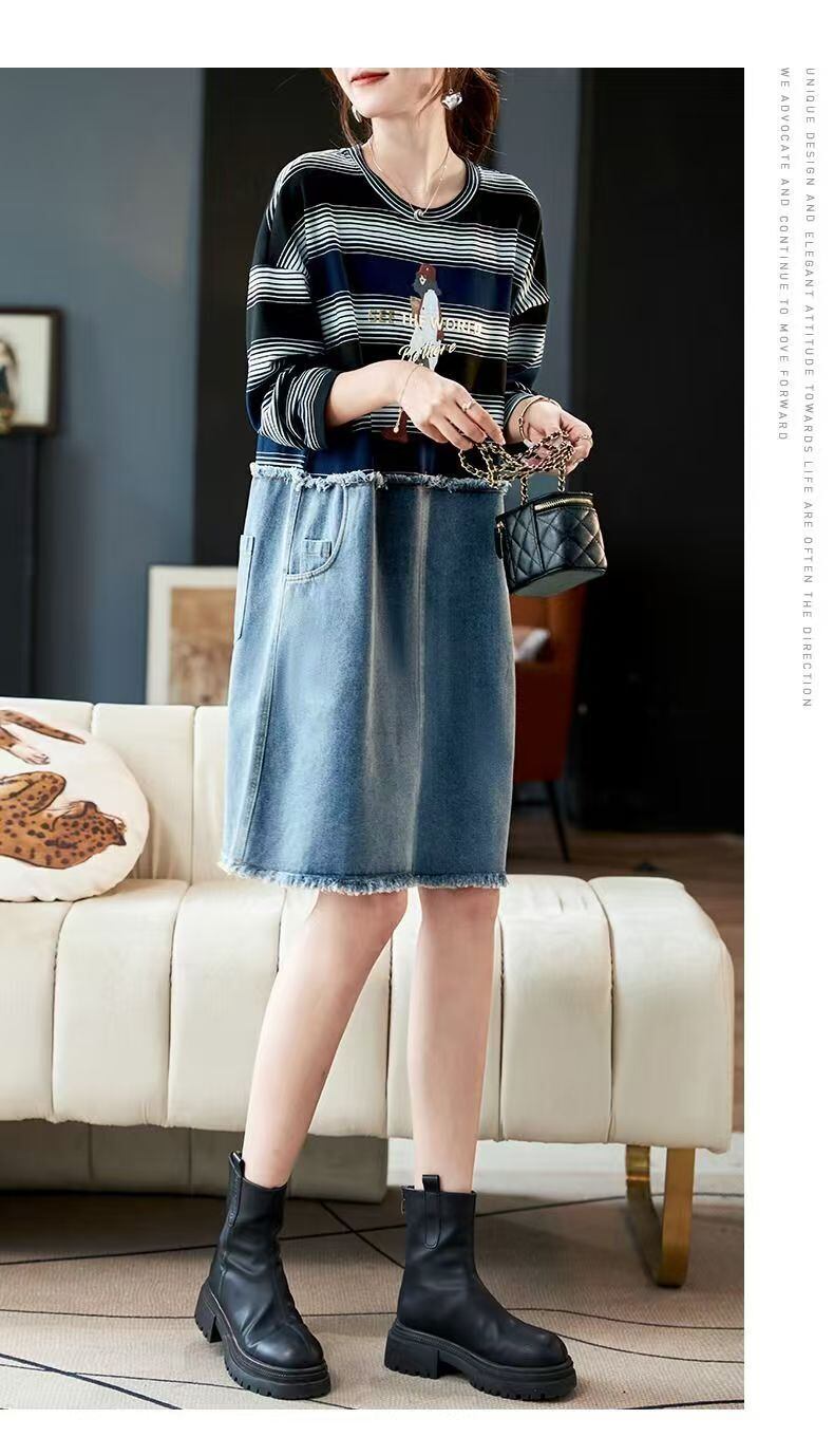 売り切れ必至 美人度アップ カジュアル エレガントデニム ワンピース<ins-10959>