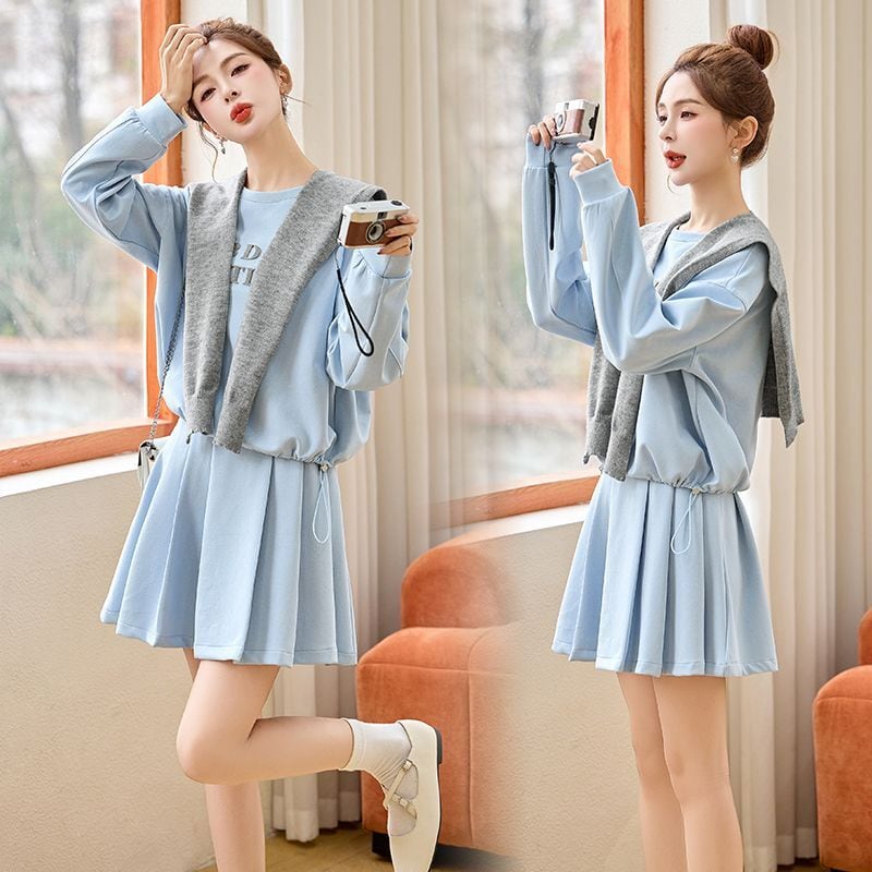 売り切れ必至 目を奪われる カジュアル トップスⅹミニスカートⅹショールセットアップ<ins-11049>