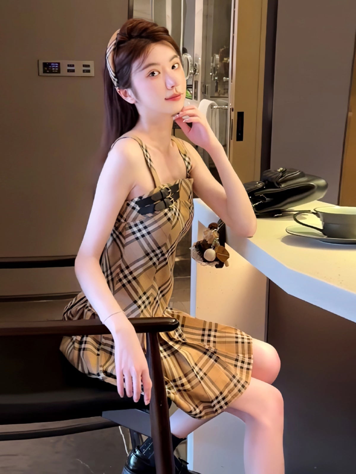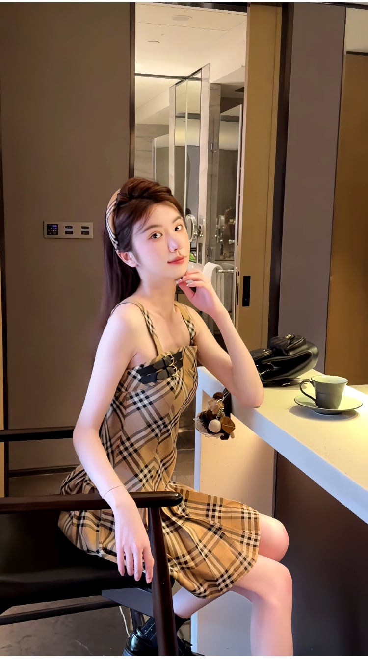 早い者勝ち 超人気 大人可愛い シンプル チェック柄 フロック<ins-11180>
