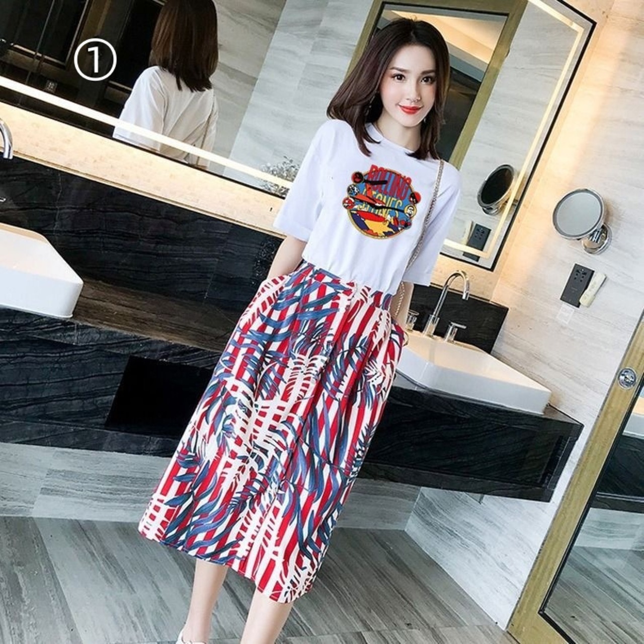 大好評 好感度UP 絶対欲しい カジュアル 全3色 半袖 Tシャツ スカート セットアップ <ins-11193>