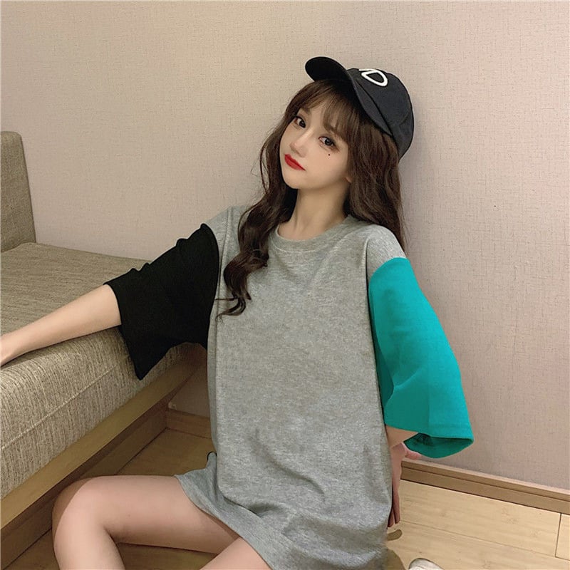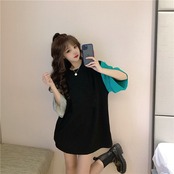 海外トレンド 好感度UP カジュアル 全2色 半袖 Tシャツ ワンピース <ins-11704>