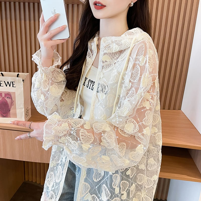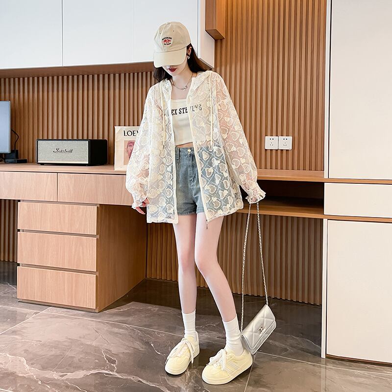 ファッション シンプル 透け感 日焼け対策 シャツ <ins-11705>