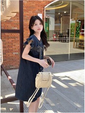 超人気 早い者勝ち 絶対流行 デニム ワンピース<ins-11851>