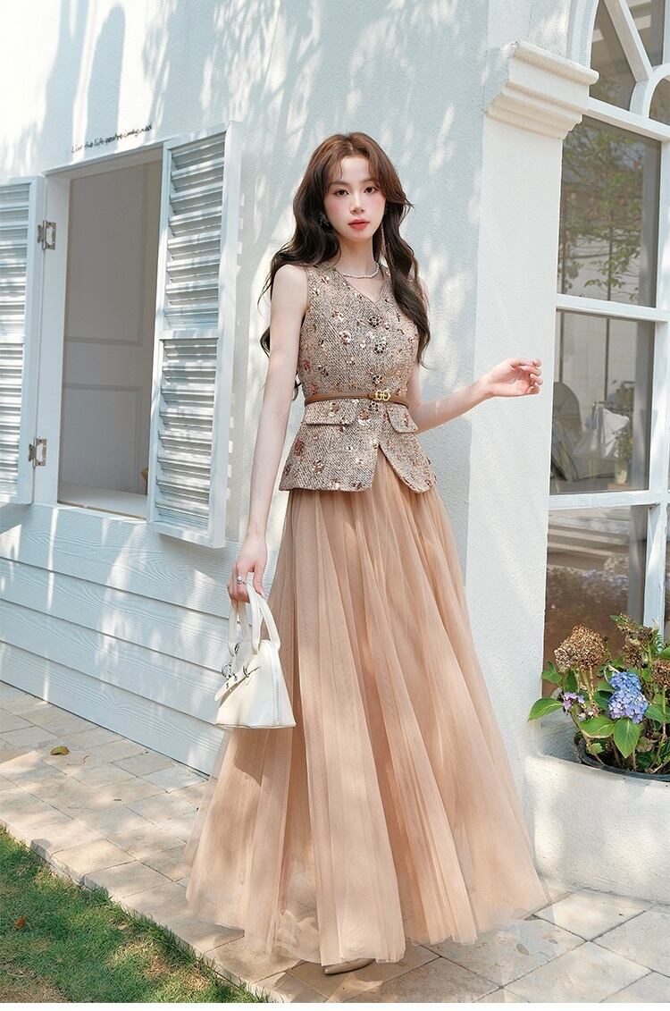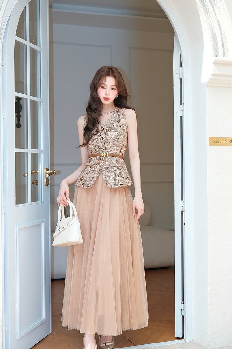 美人度アップ 合わせやすい 大注目 上品 レース 切り替え セットスカート(ツーピース)<ins-11928>