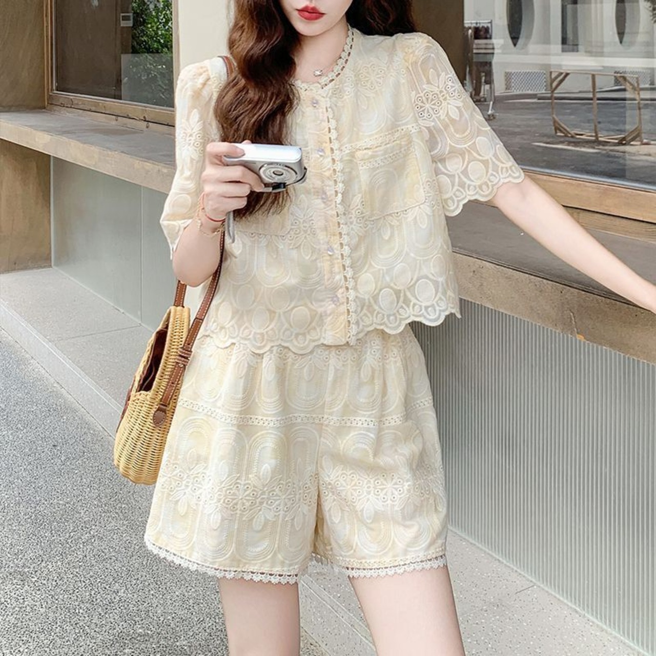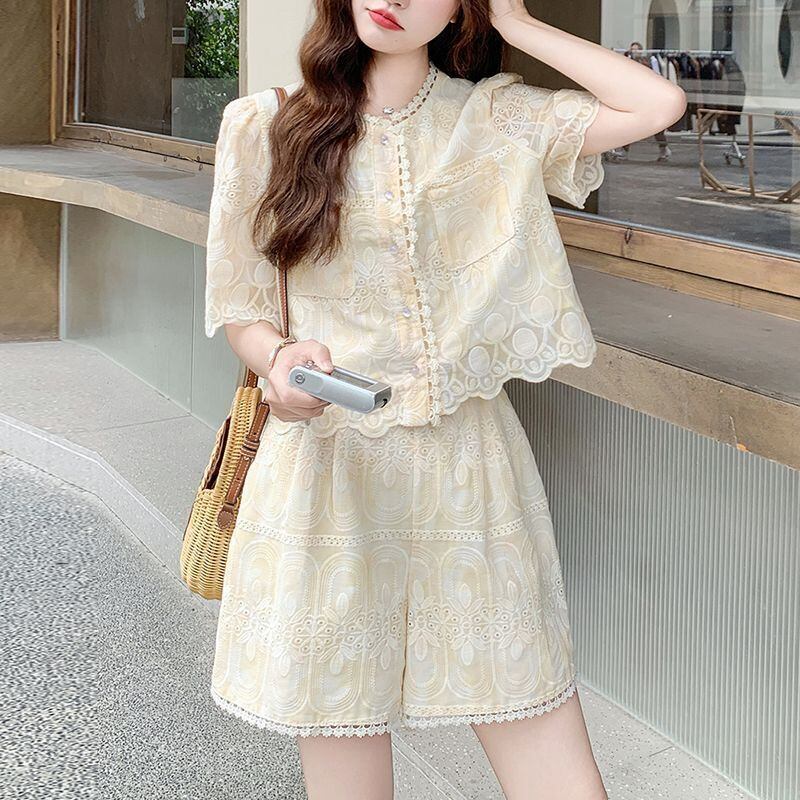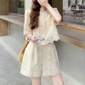 美人度アップ カジュアル ファッション シャツ+ショートパンツ セットアップ<ins-12035>