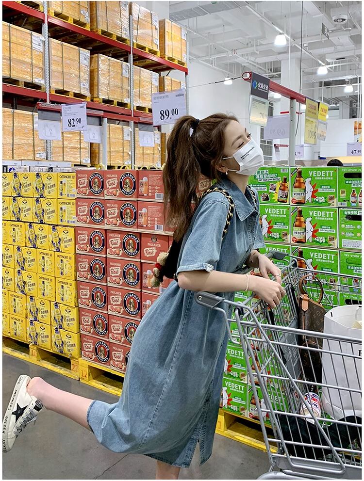 好感度UP 大好評 絶対流行 早い者勝ち デニム カジュアル ワンピース<ins-12099>
