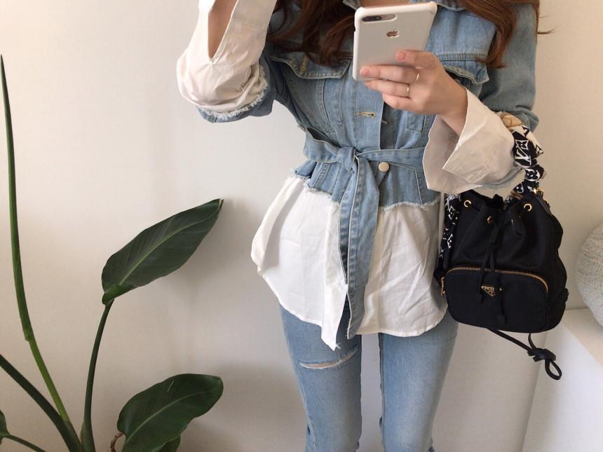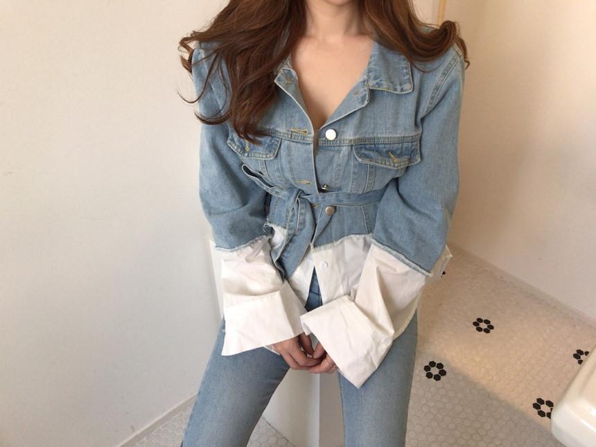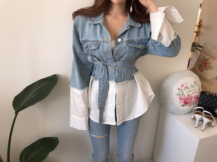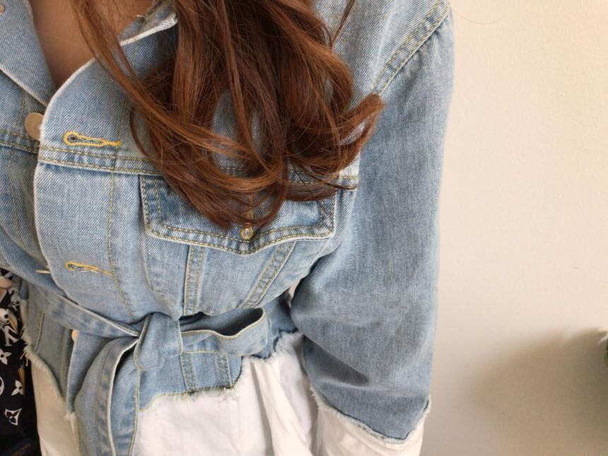 話題沸騰中 デイリー 長袖 切り替え スウェット デニム パーカー トップス<ins-12136>