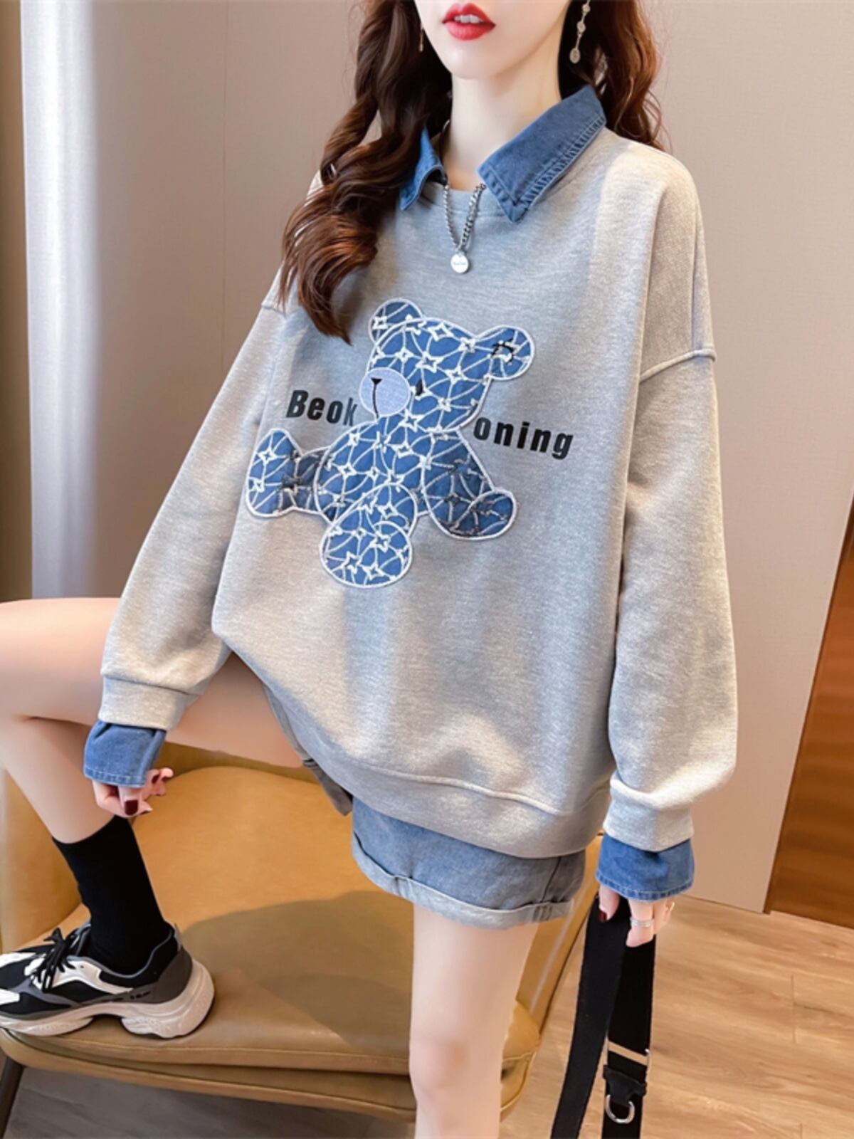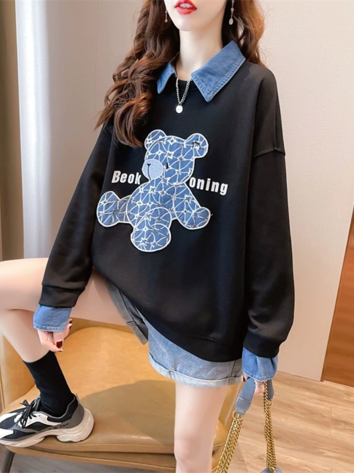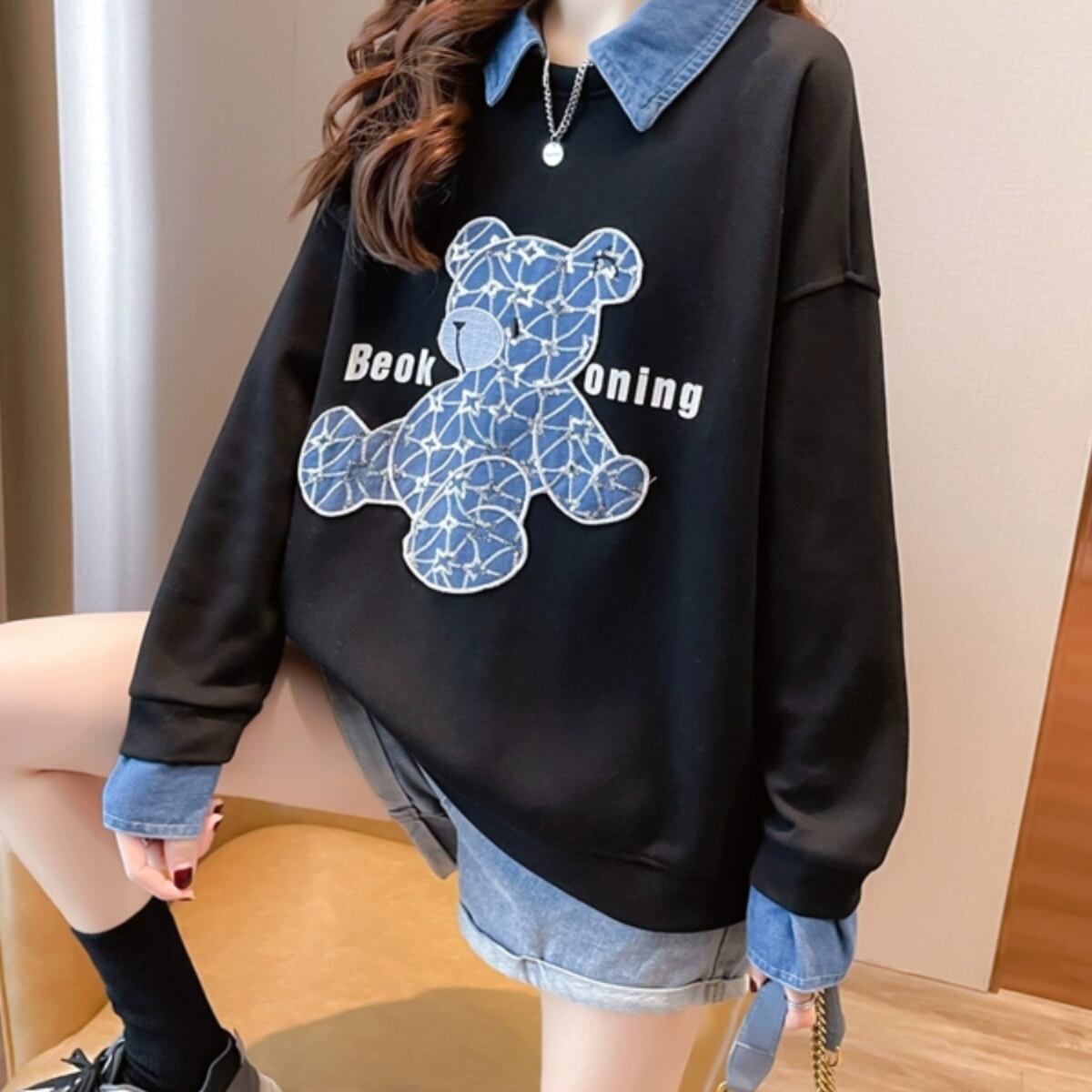 スタイルアップ トレンドアイテム 切り替え カジュアル 全3色 スウェット<ins-12319>