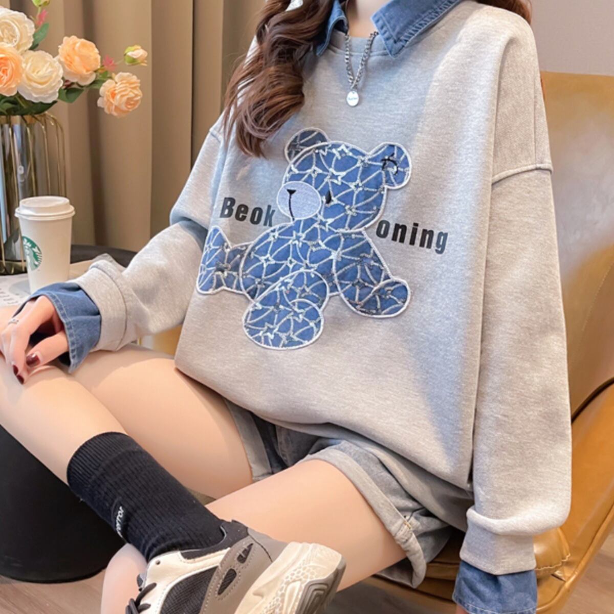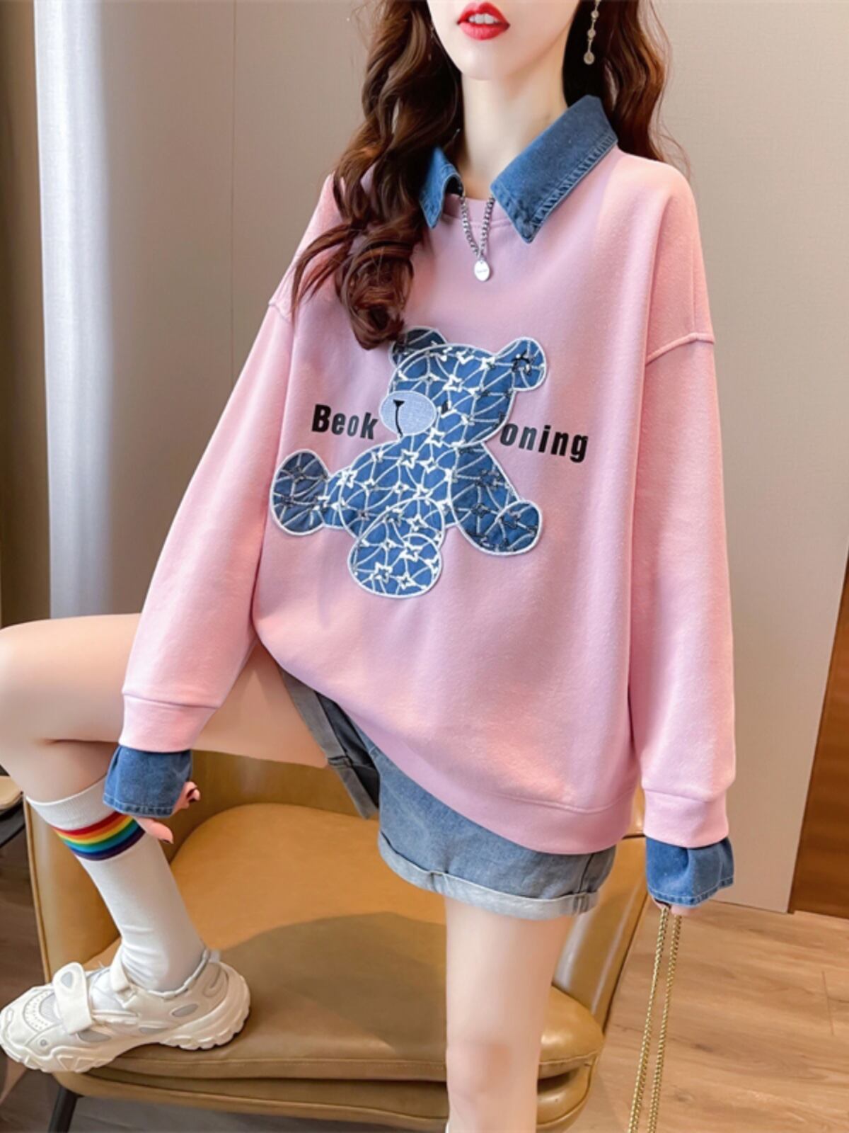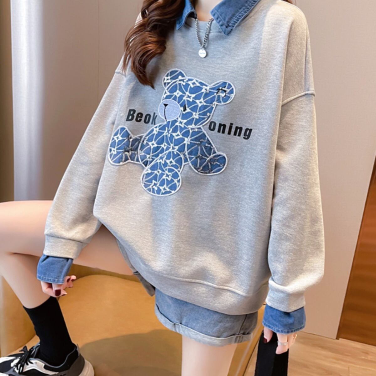 スタイルアップ トレンドアイテム 切り替え カジュアル 全3色 スウェット<ins-12319>