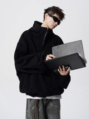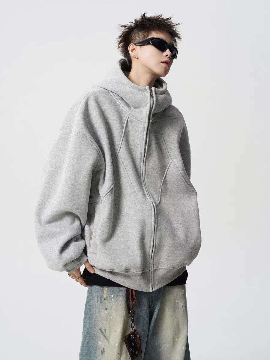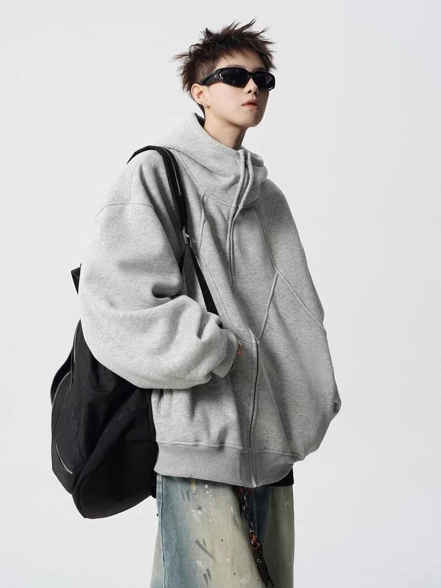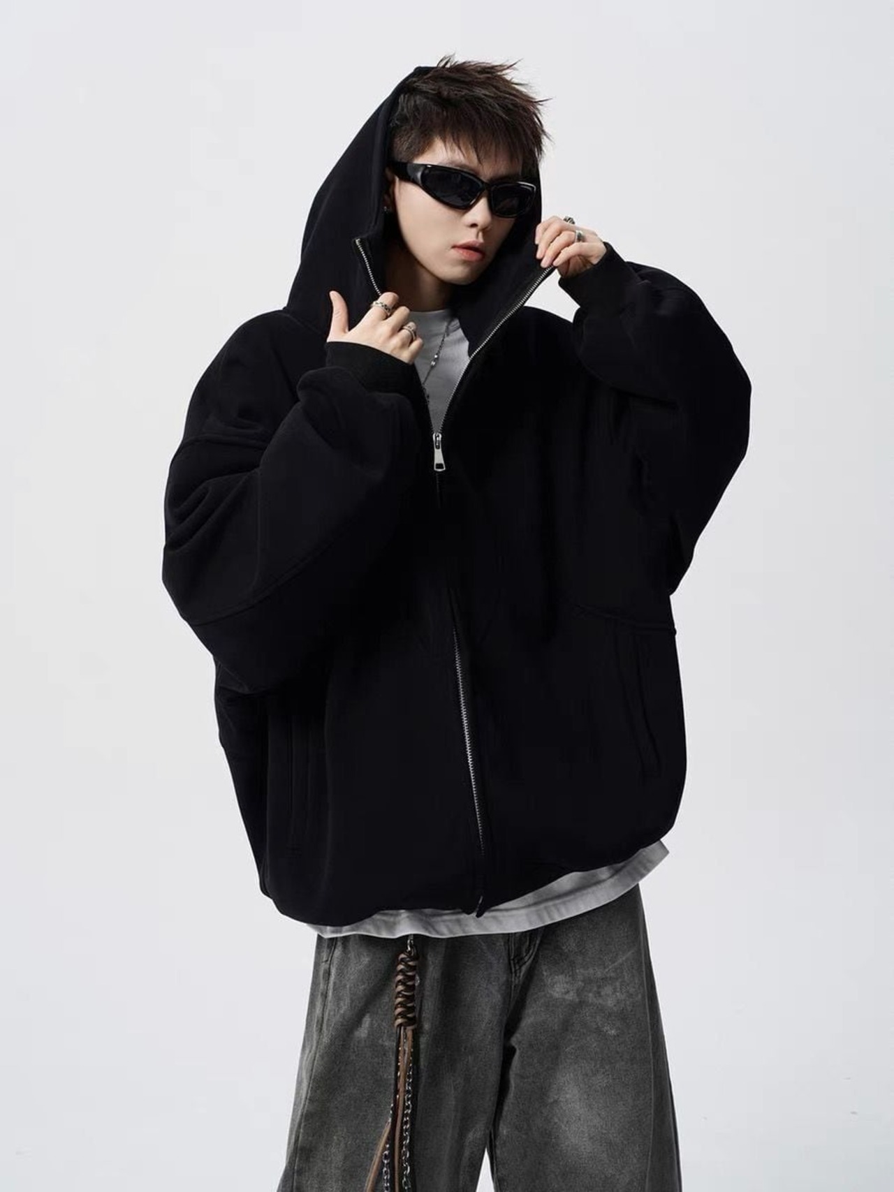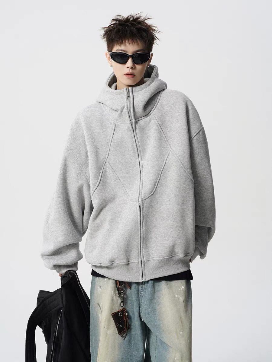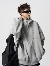 ファッション感満々 切り替え 2色選択 男女兼用 ジップアップパーカー<ins-12543>