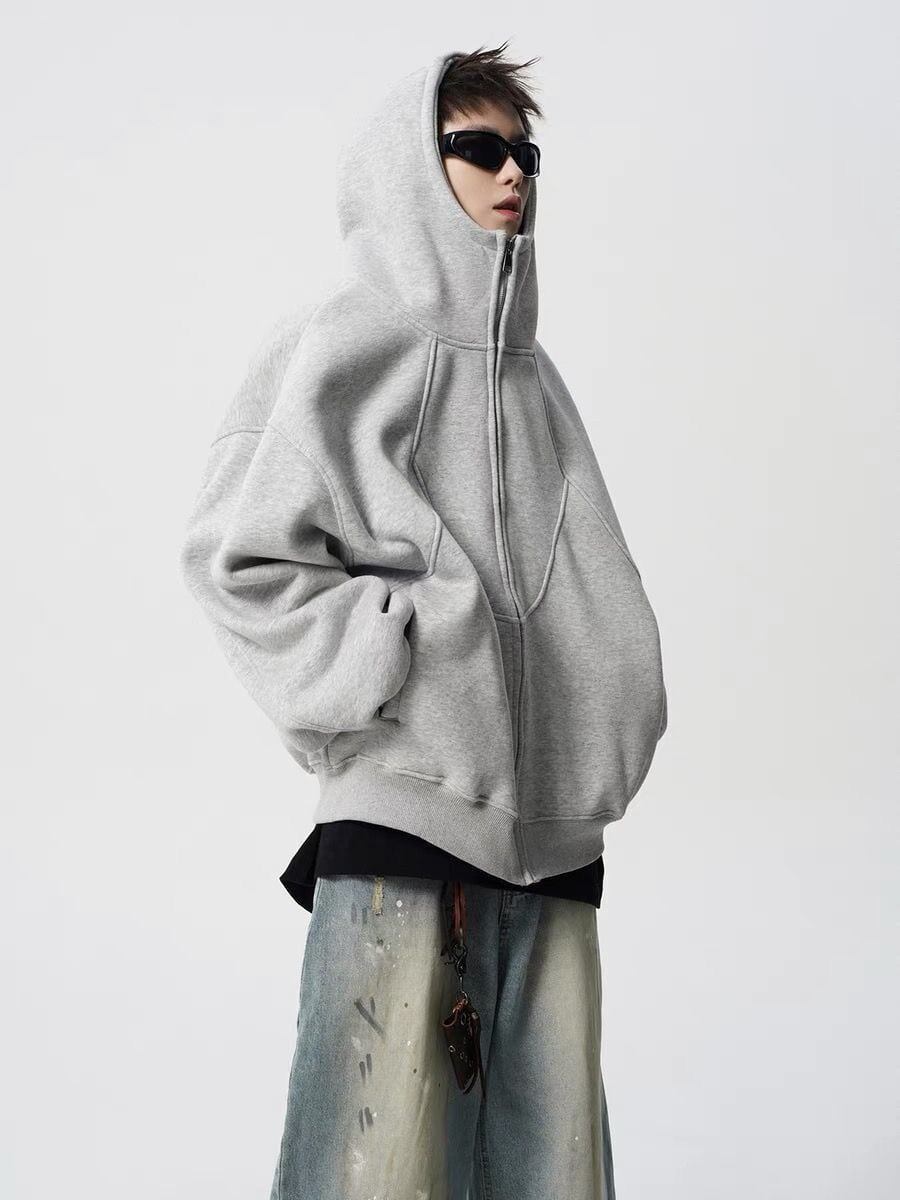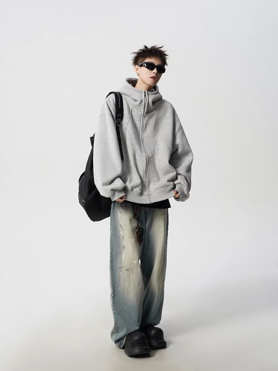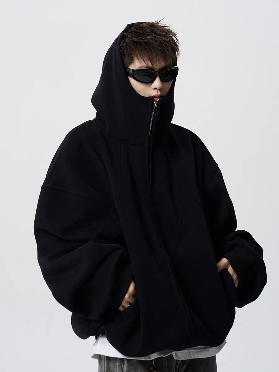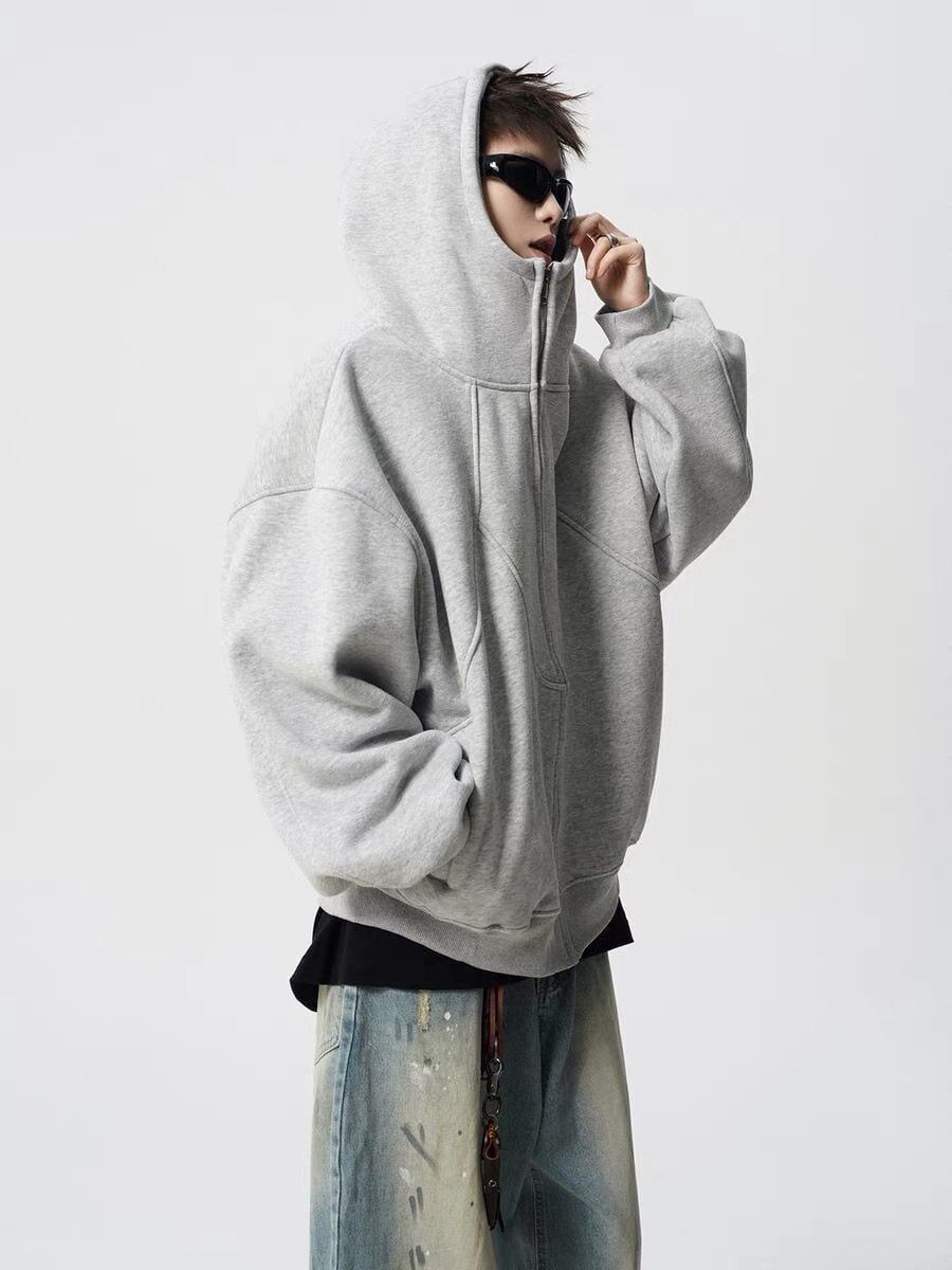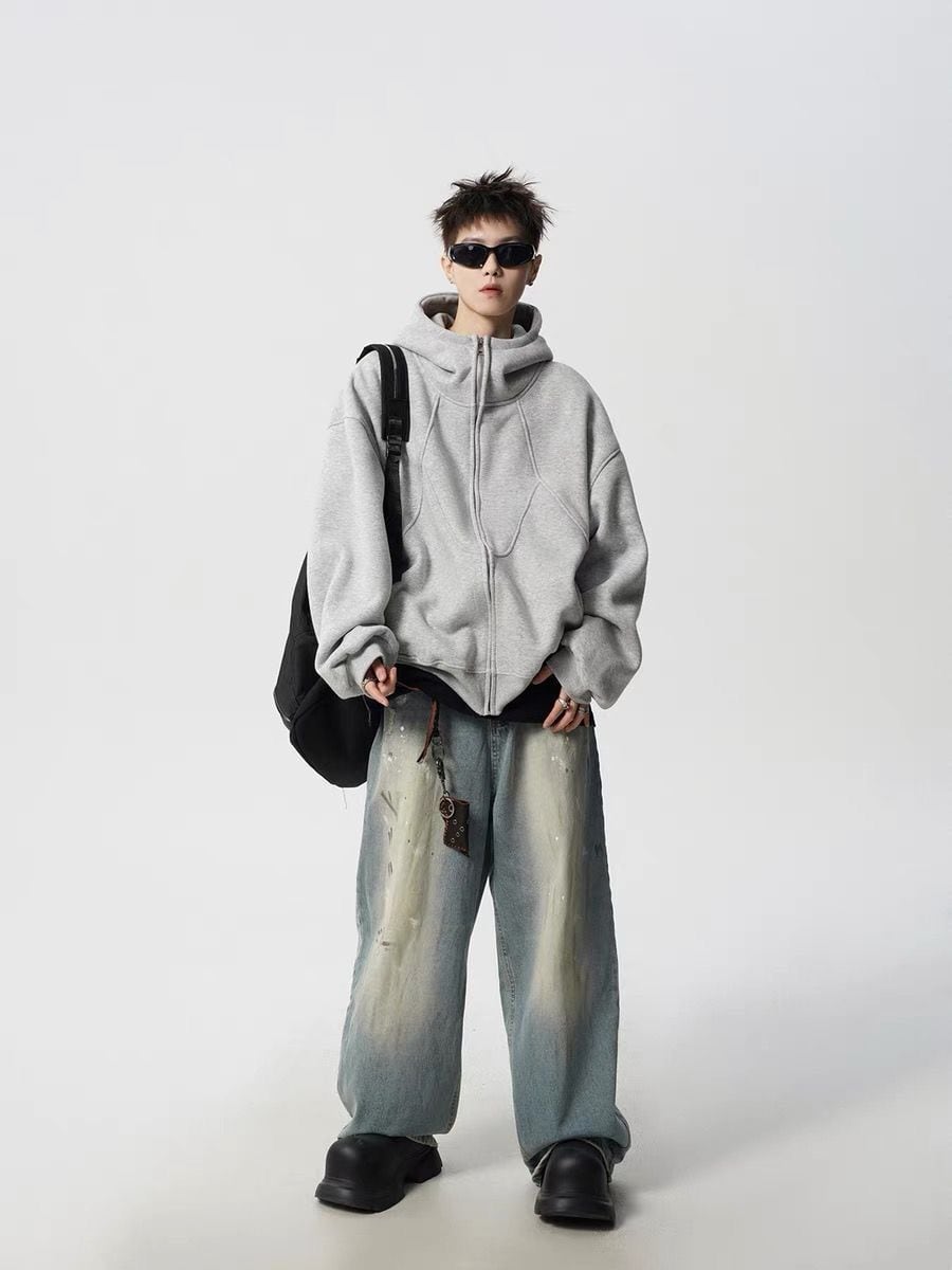 ファッション感満々 切り替え 2色選択 男女兼用 ジップアップパーカー<ins-12543>