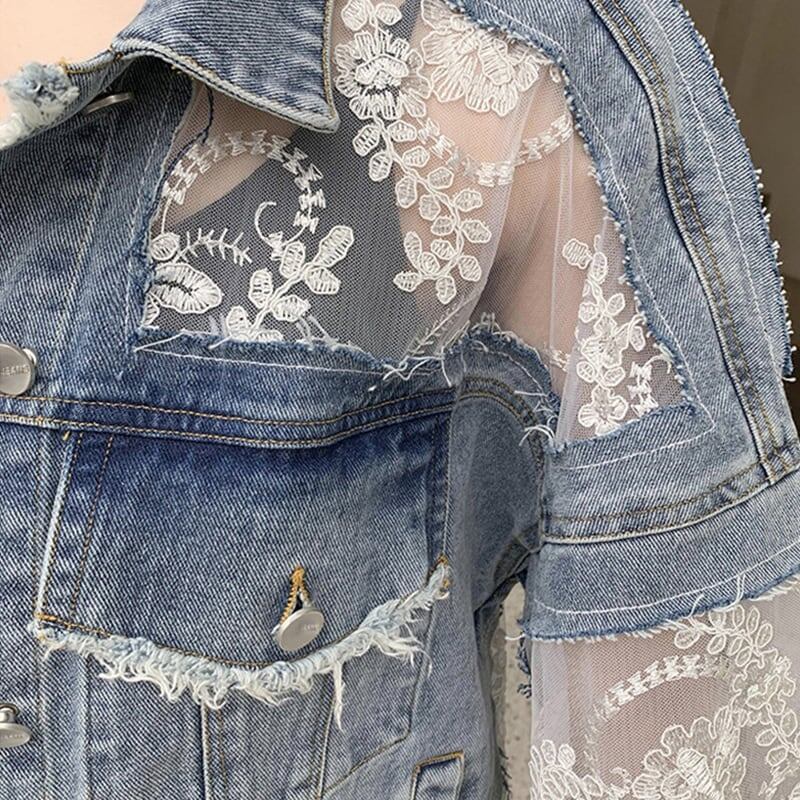 オシャレ度満点 透け感 チュール 刺繍 切り替え ジャケット ブルゾン<ins-2903>