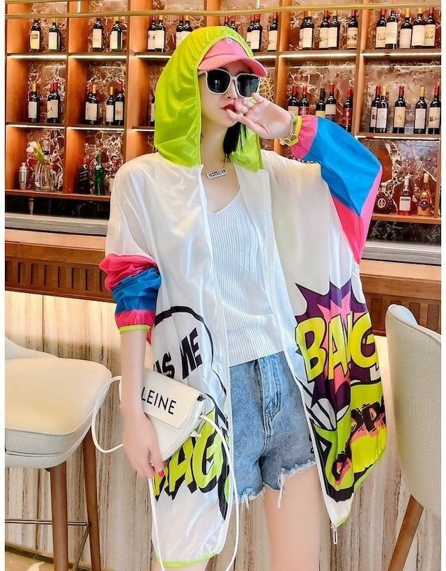 個性的なデザイン 一目惚れ 日焼け対策 グラデーション パーカー<ins-4976>