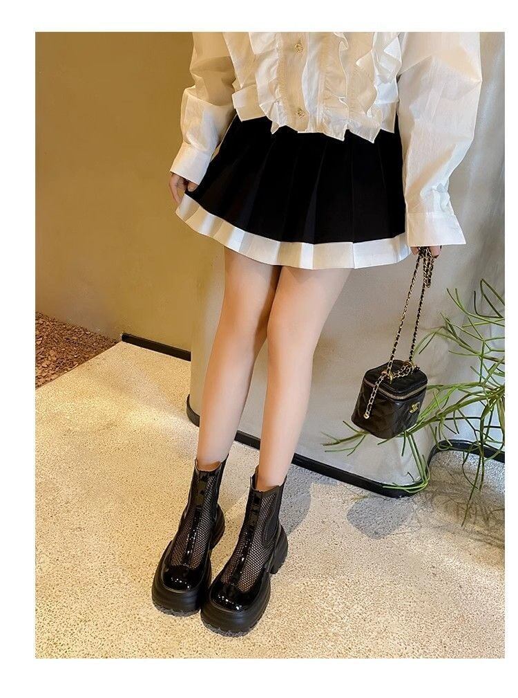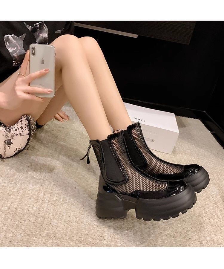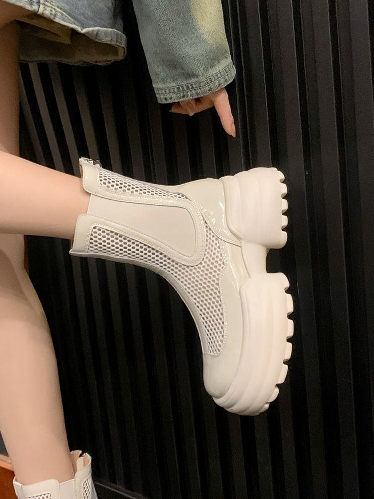 新作 デザイン 透かし彫り 無地 通気性 厚底 シューズ おしゃれ ブーツ サンダル <ins-6198>
