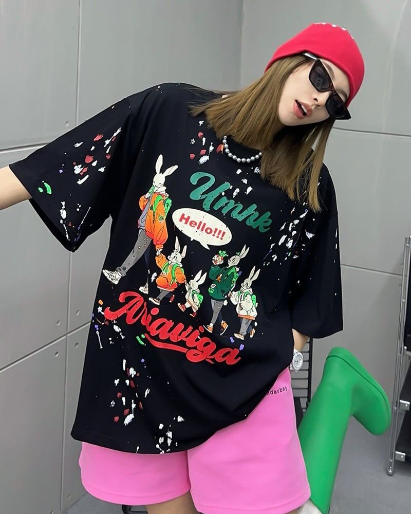 早い者勝ち ファッション キュート ルーズ 落書き風 プリント半袖Tシャツ 全3色<ins-4913>