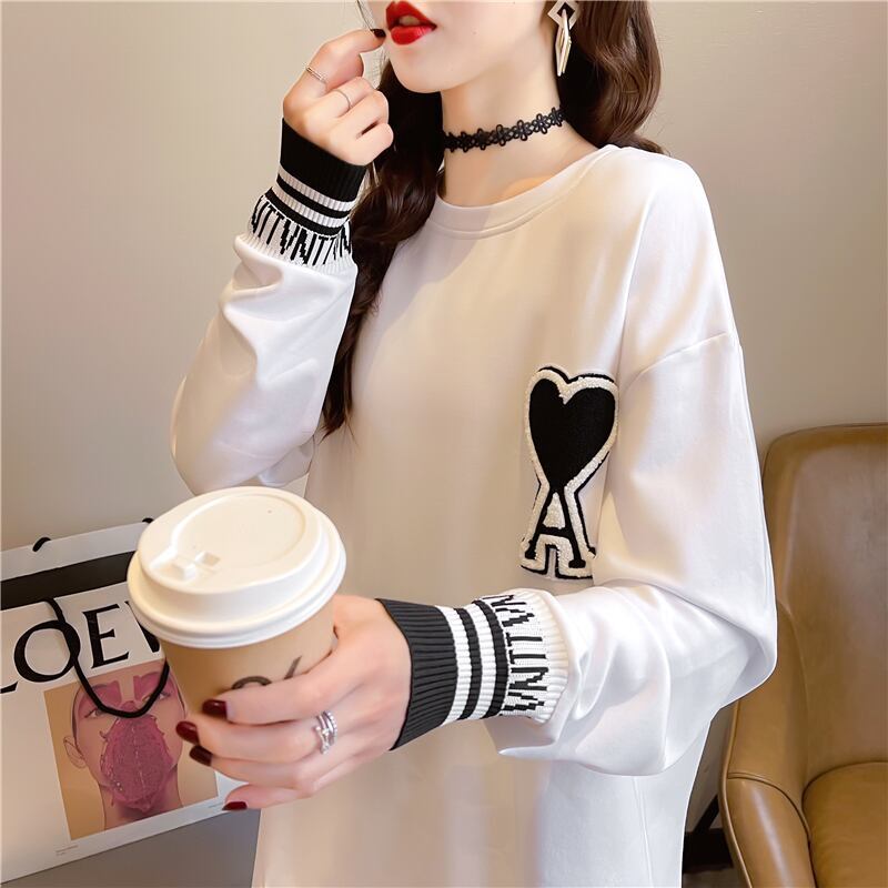 シンプル ファッション 切り替え プリント Tシャツ カットソー<ins-3664>