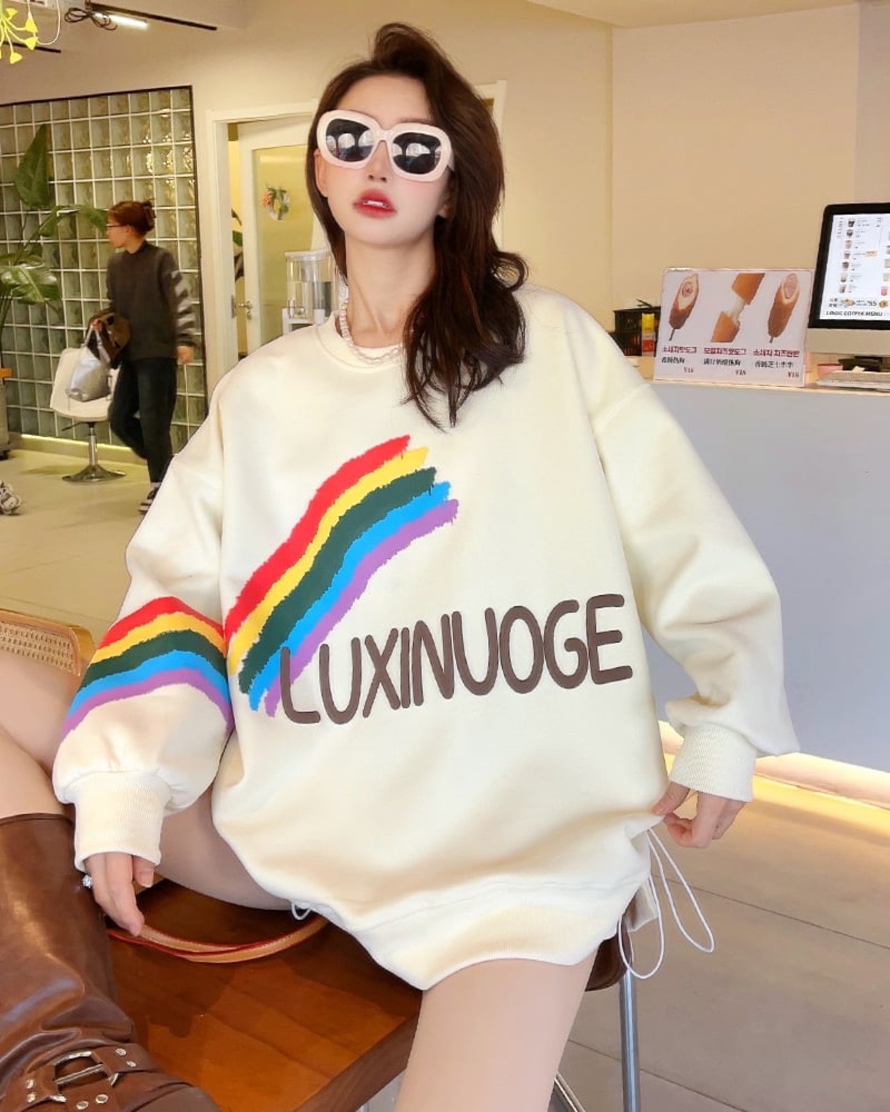 話題沸騰中 虹色 英字ロゴ ゆったり スウェット全6色<ins-4835>