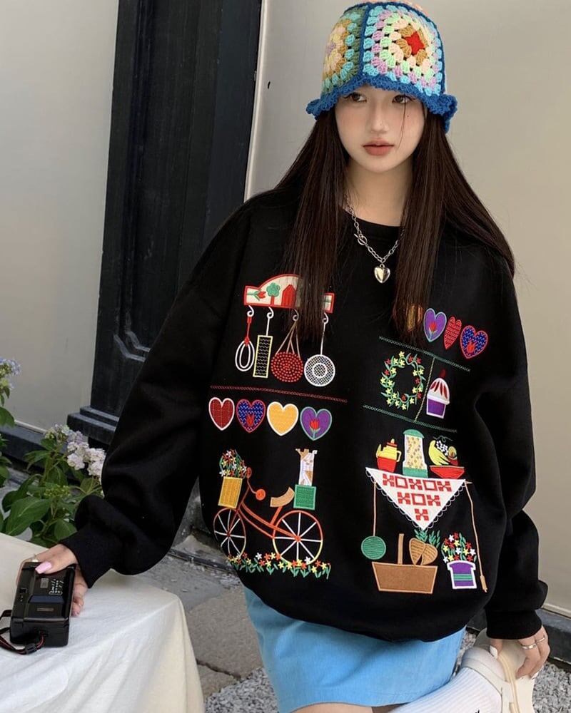 好感度UP刺ロゴ ゆったり オーバーサイズ スウェット全3色<ins-4836>