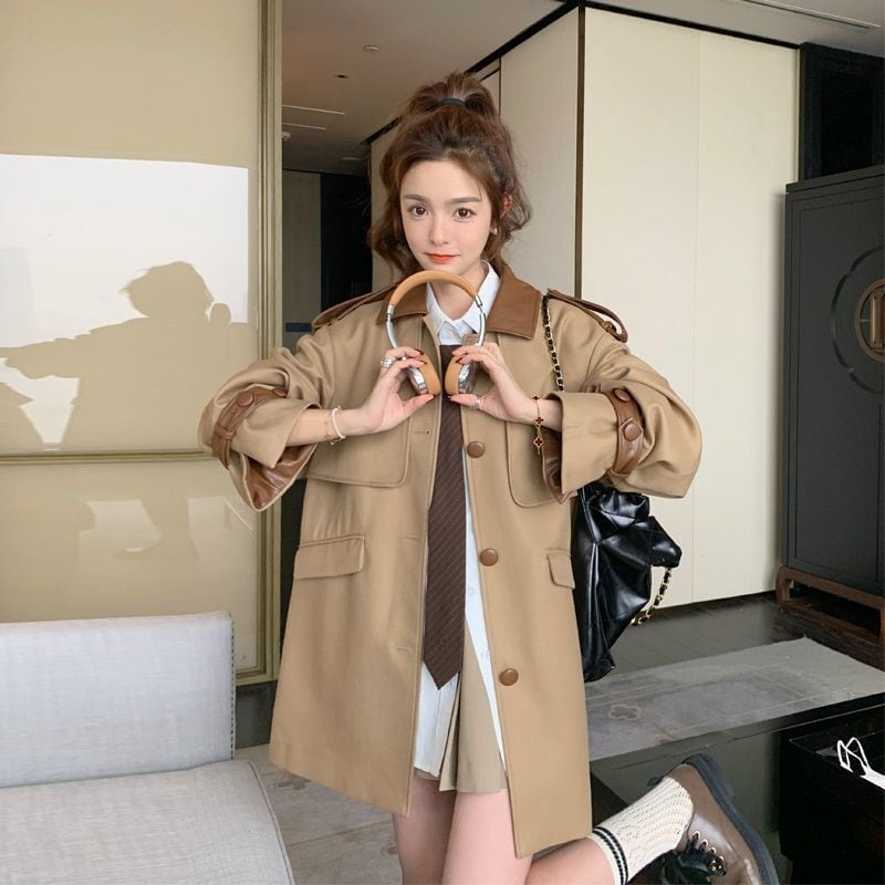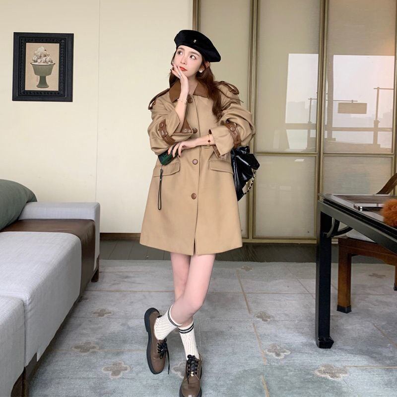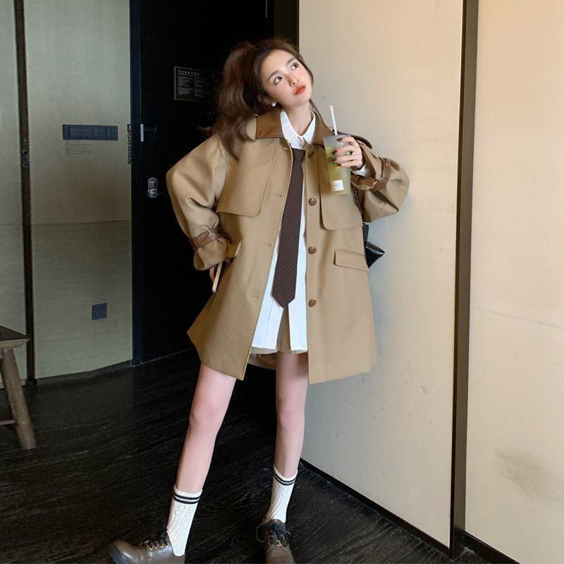 大人らしい 配色 トレンチコート ゆったりコート<ins-4816>