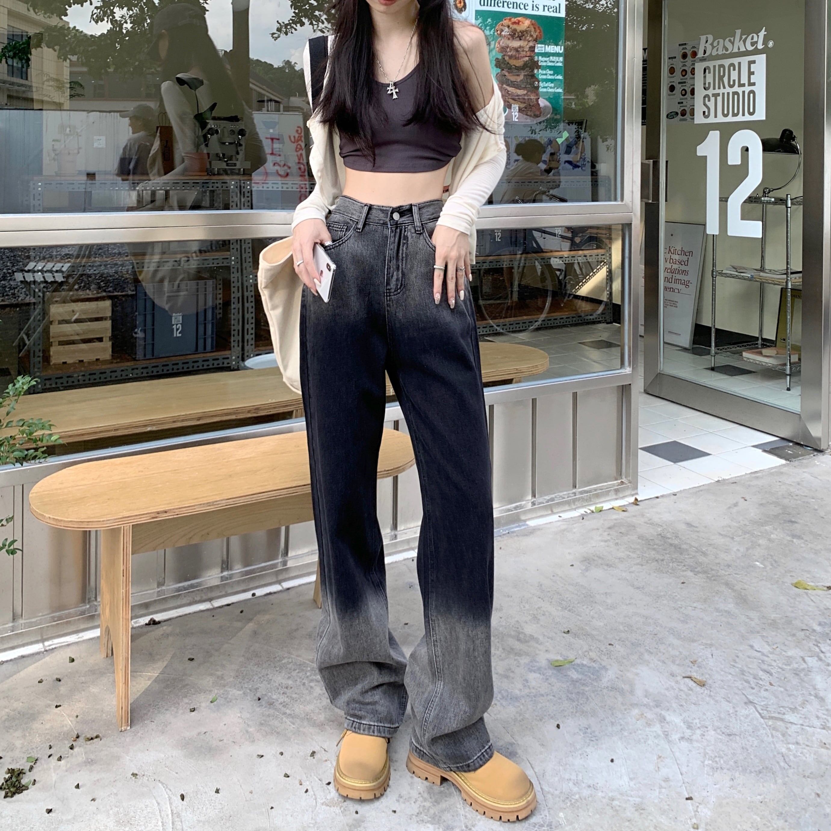 カジュアル 好感度満載 グラデーション ハイウエスト パンツ ボトムス<ins-3736>