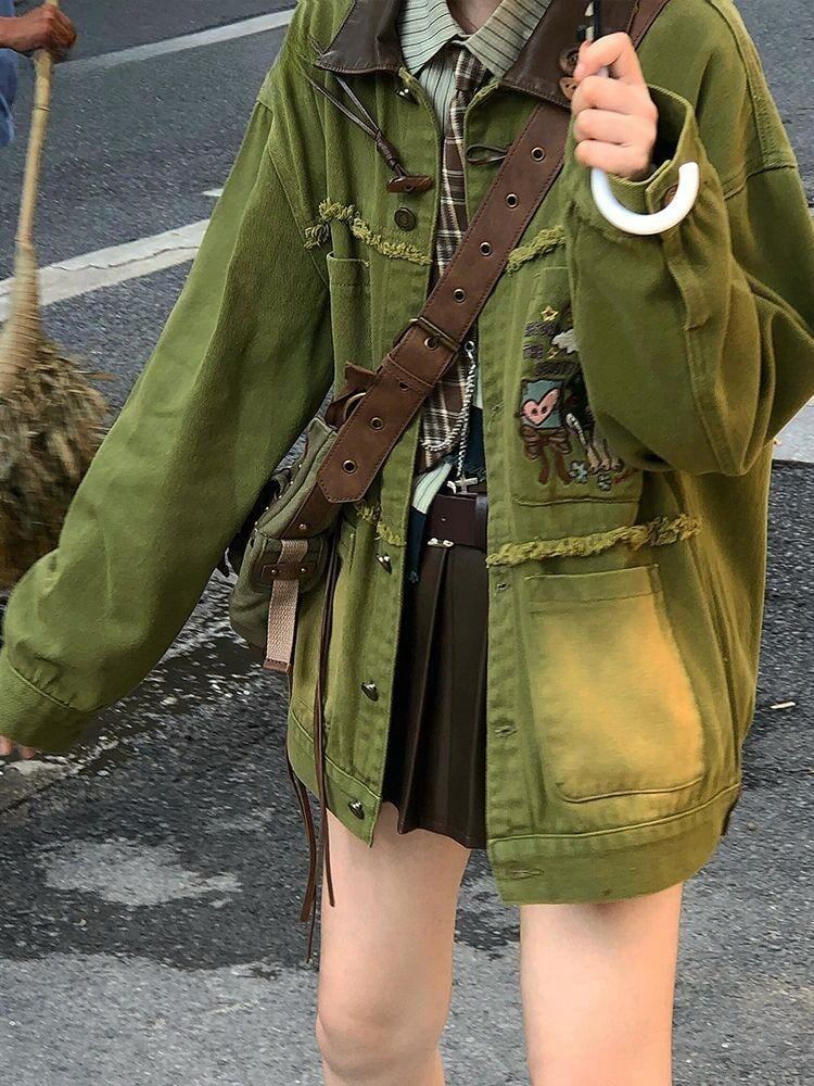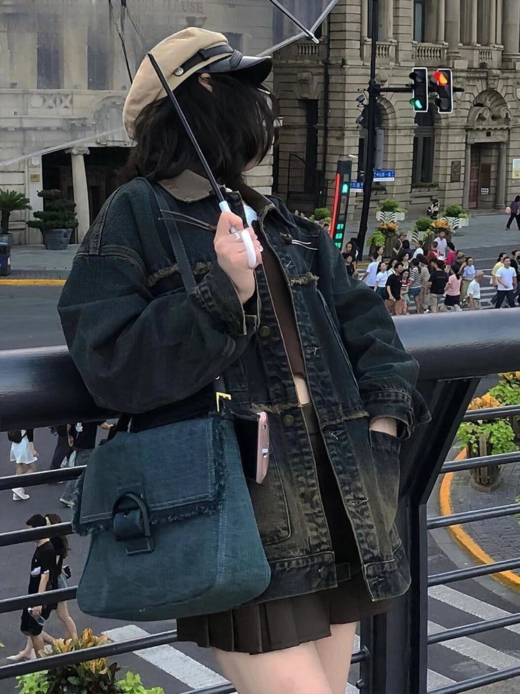 質感のいいヴィンテージ加工 デニムジャケット 全2色ゆったりコート<ins-4798>