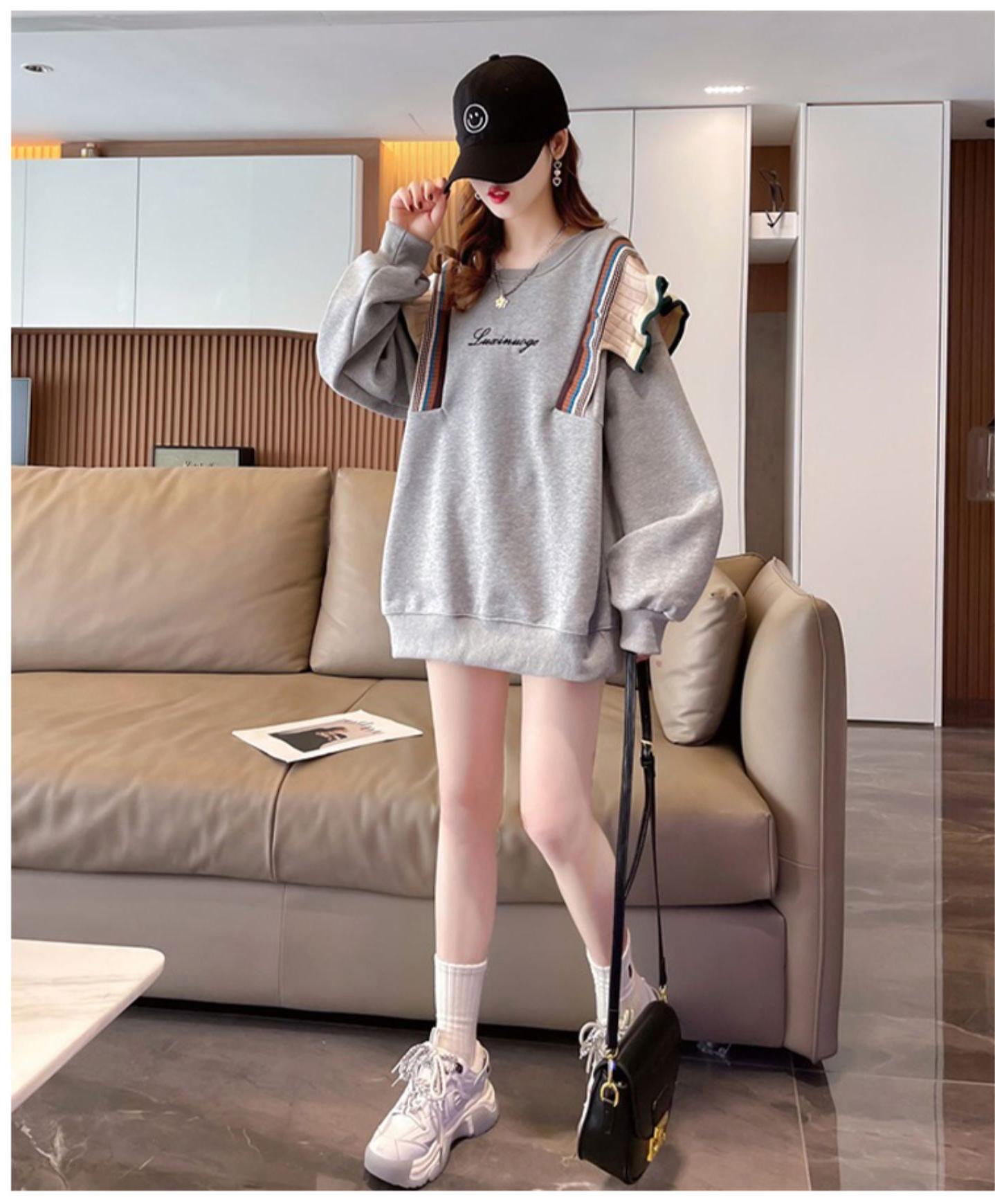 美人度アップ フリル 英字ロゴ ゆったりスウェット 全3色トップス<ins-4808>