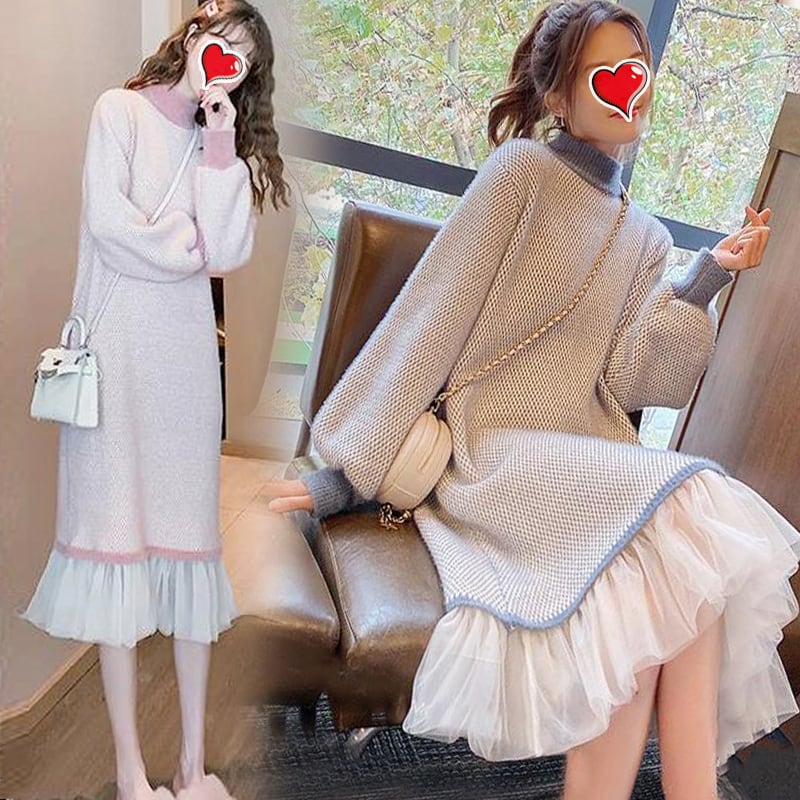 大人可愛いスウィートニットワンピース全2色<ins-4314>