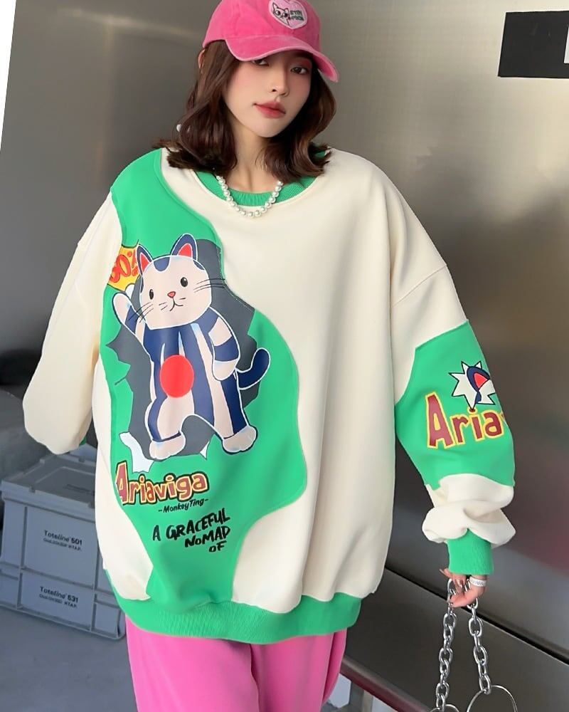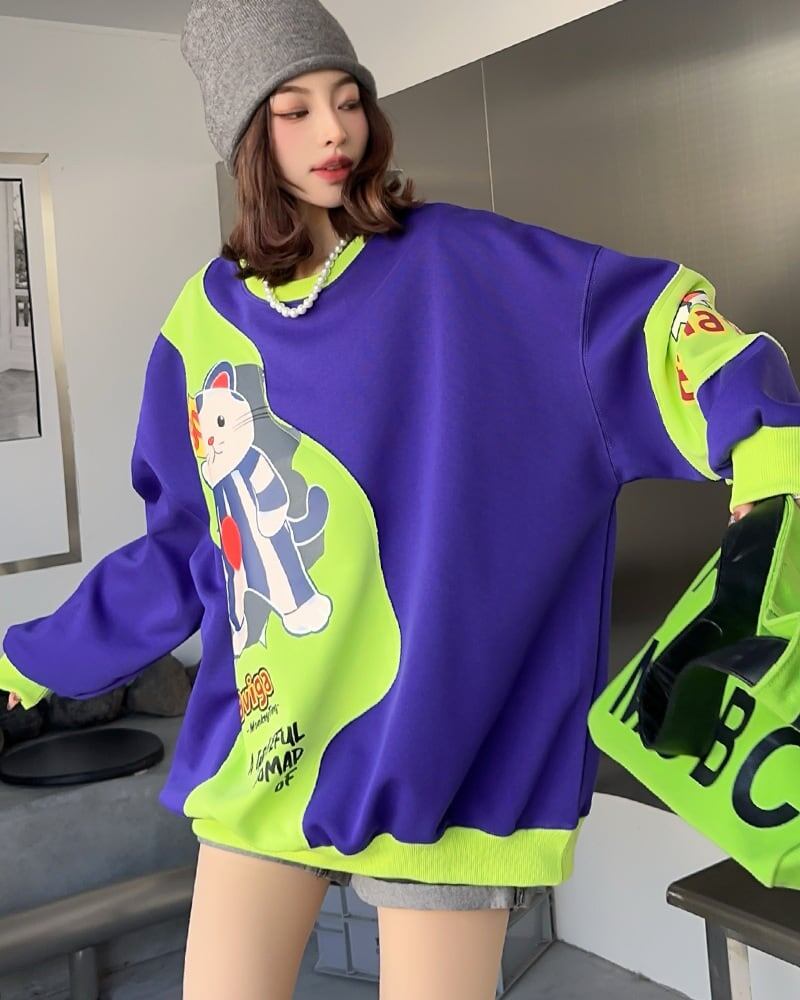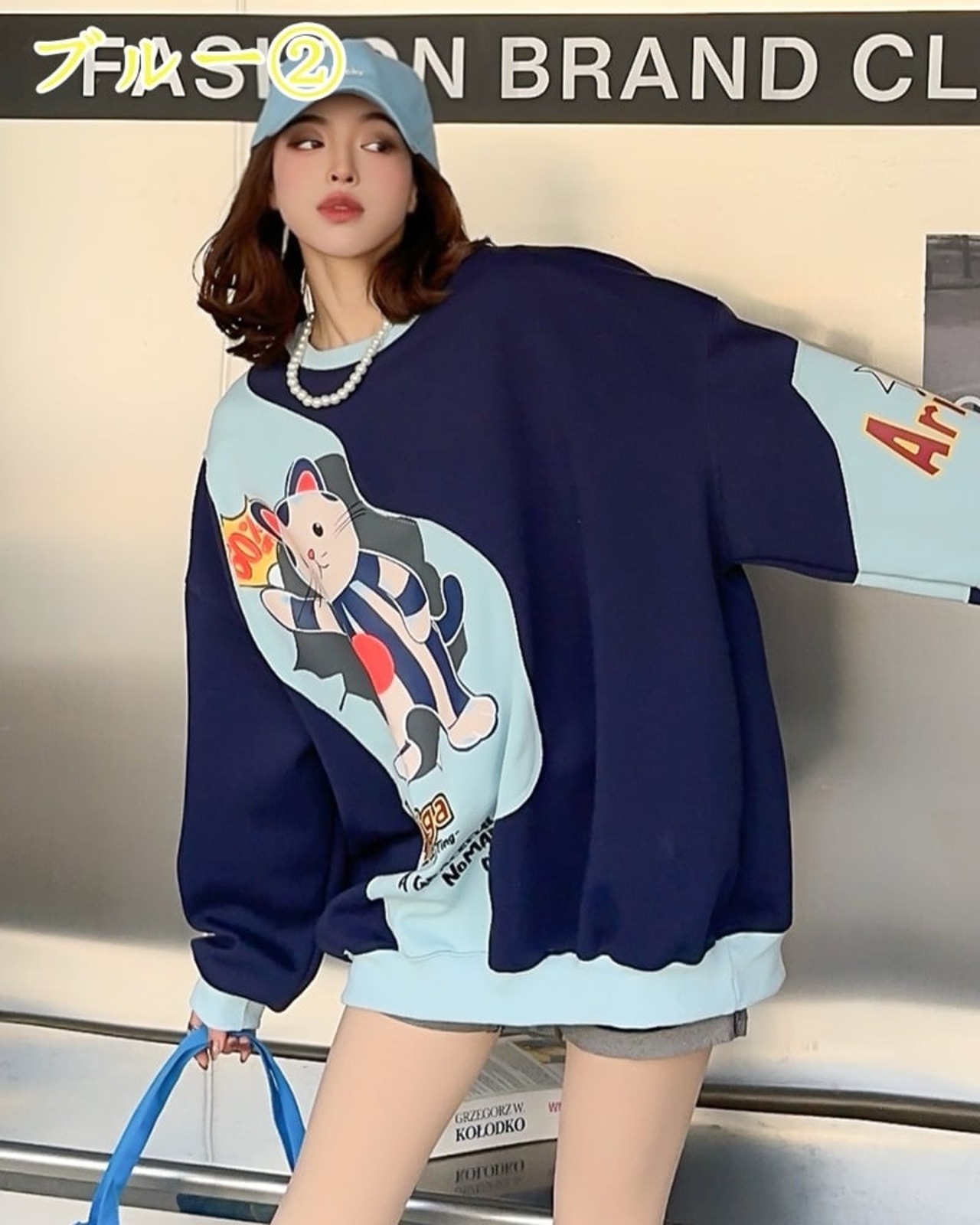 おしゃれ ビックロゴ 配色スウェット全4色ゆったりトップス<ins-4765>