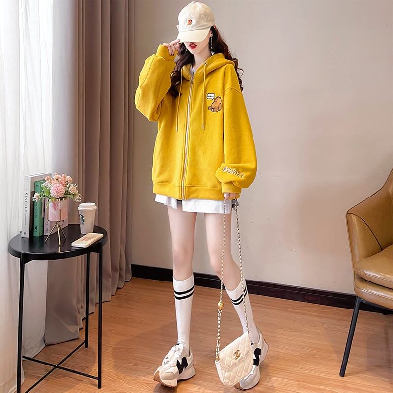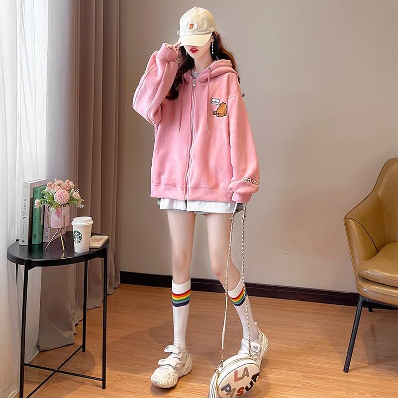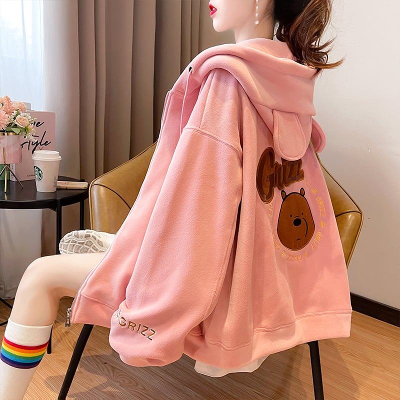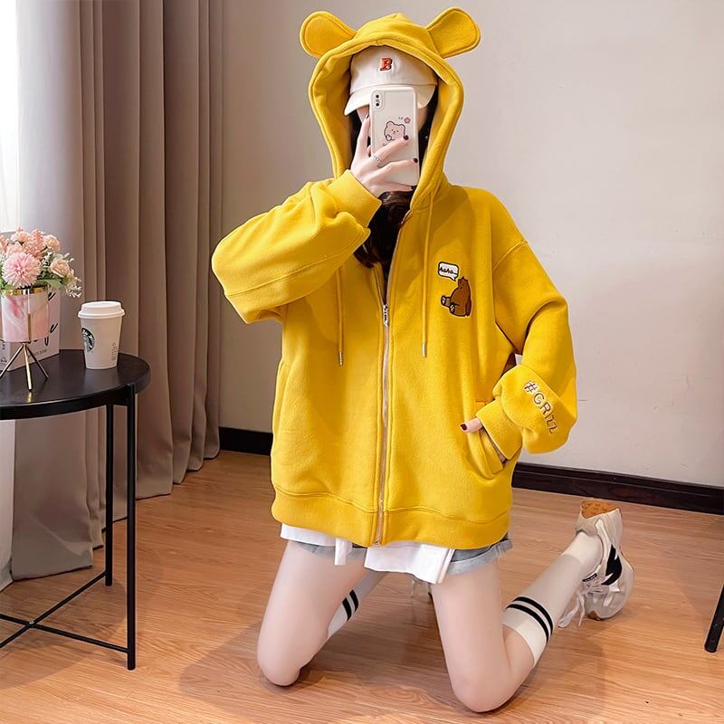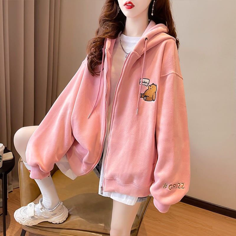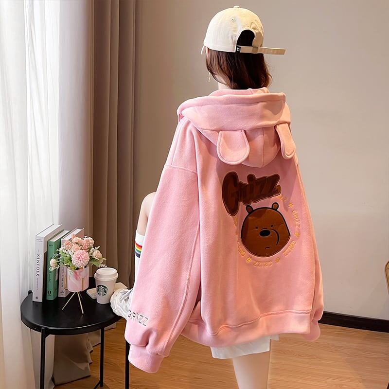 【裏起毛】可愛いクマちゃん厚手フルジップパーカー二色あり<ins-4677>
