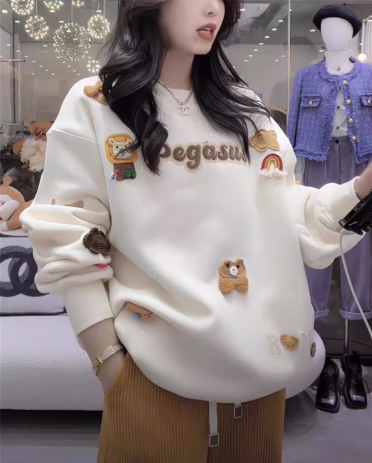 【裏起毛】英字ロゴゆったりスウェット厚手トップス<ins-4708>