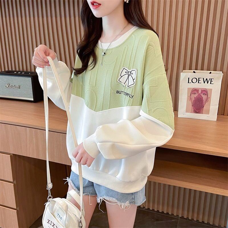 好感度100%リボン柄ロゴゆったり厚手スウェット全3色トップス<ins-4615>