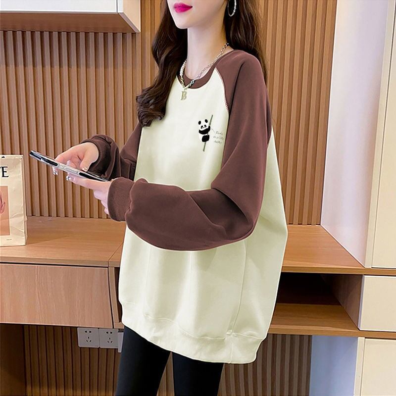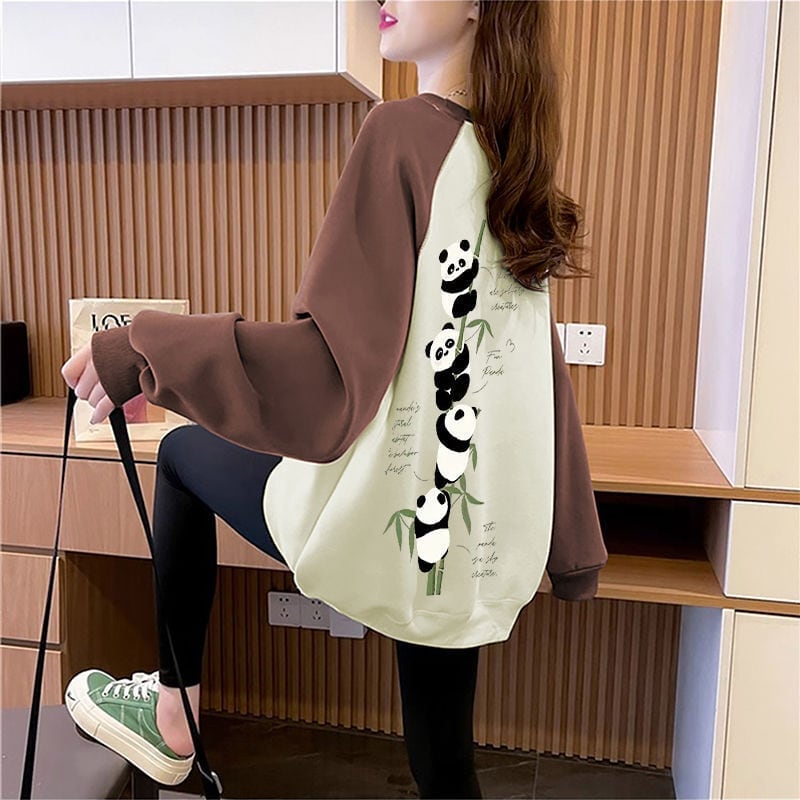 【裏起毛】気質満点 後ろパンダロゴゆったり厚手スウェット全2色<ins-4611>