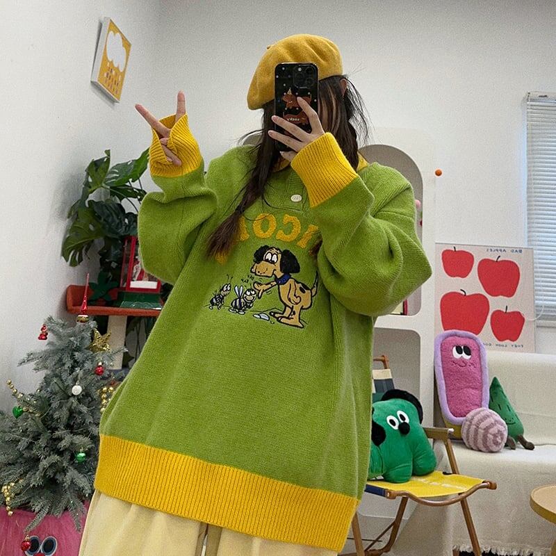 可愛いワンちゃん厚手ニットセーター全3色トップス<ins-4594>