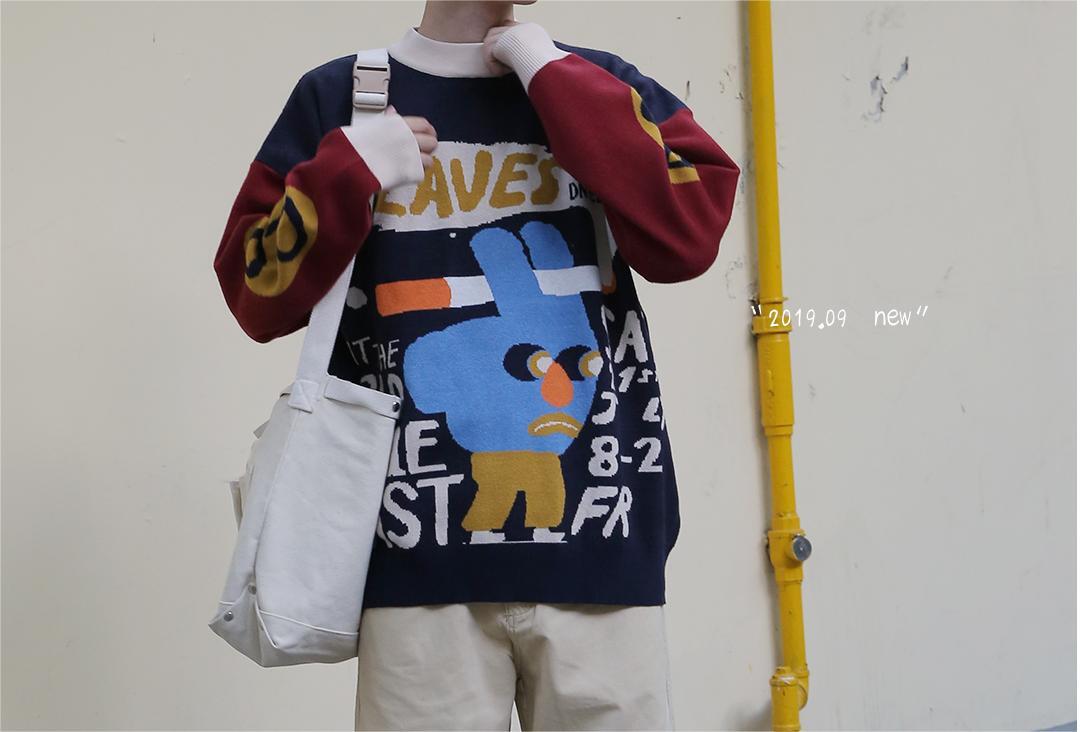 おすすめビッグロゴ ユニセックス全2色ニットセーター<ins-4586>