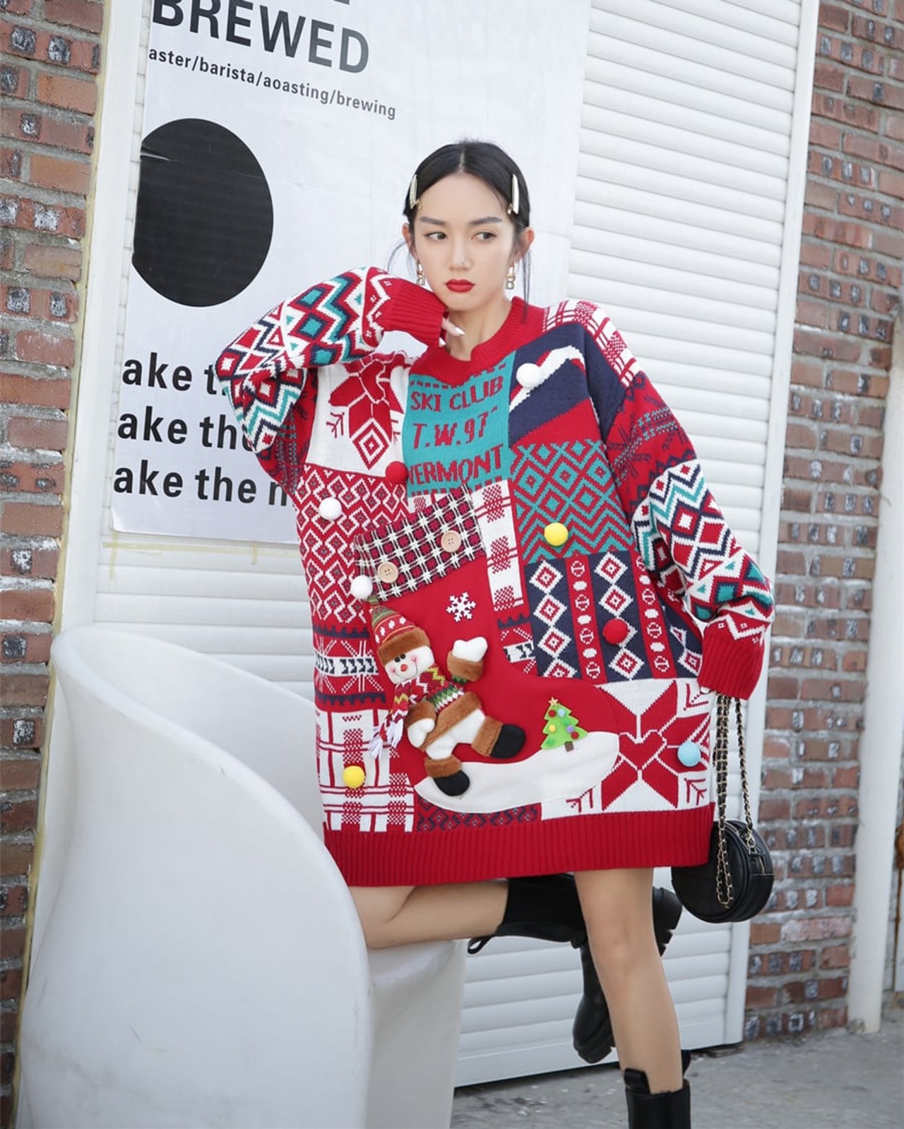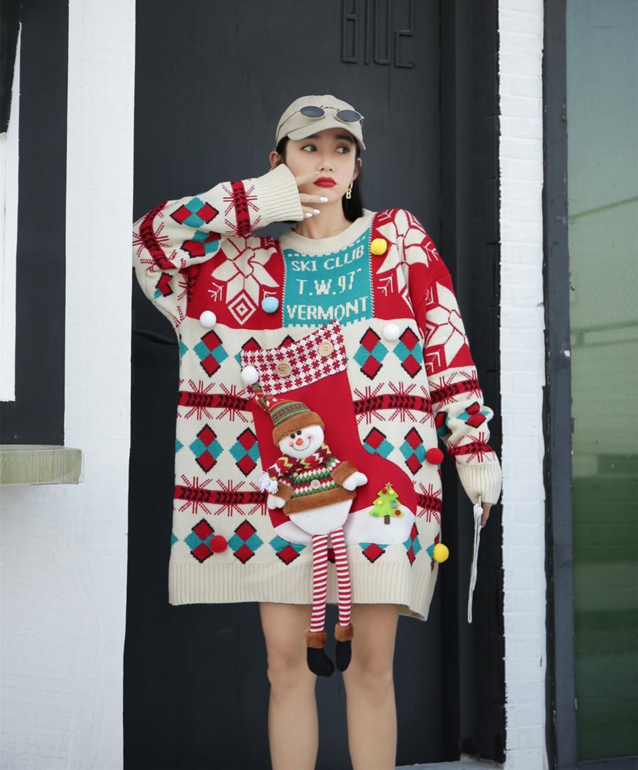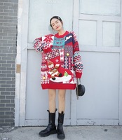 絶対欲しいクリスマスロゴゆったりニットセーター全2色 <ins-4557>