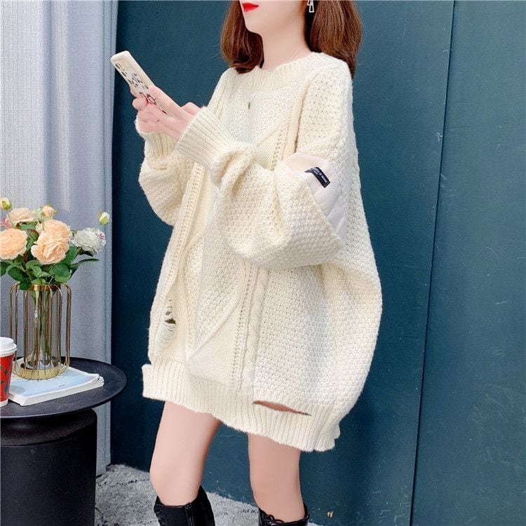 話題沸騰中切り替えゆったりニットセーター全4色トップス<ins-4578>