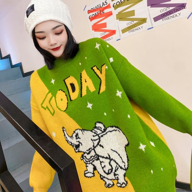 早い者勝ちかわいいぞうさんロゴニットセーター厚手トップス <ins-4530>