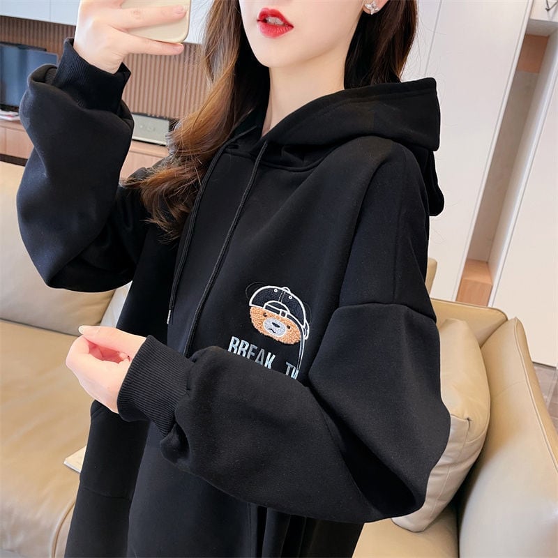 早い者勝ちロングフード付きパーカー裏起毛ロゴワンピース全三色<ins-4456>