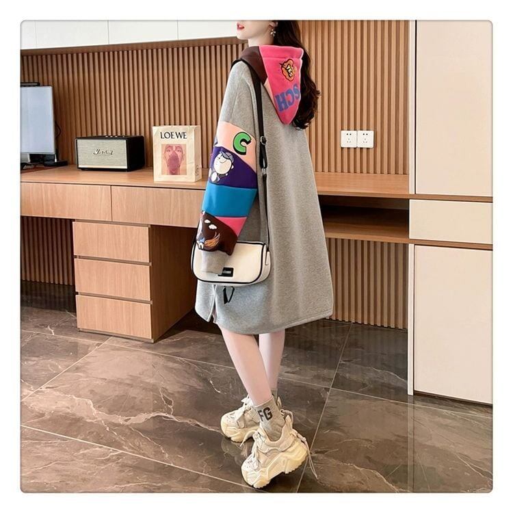 【裏起毛】超人気 ファッション 個性派 ルーズ パーカー ワンピース<ins-5708>