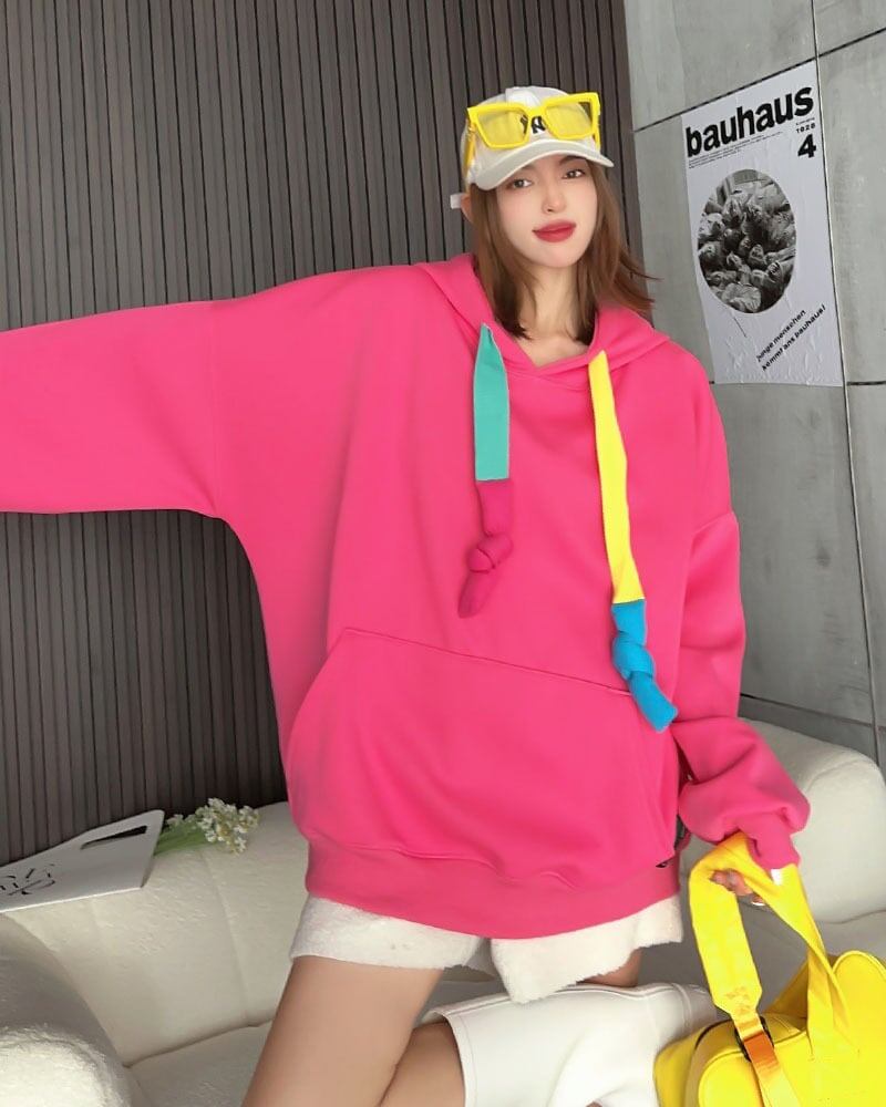 定番シンプルオーバーサイズフード付きパーカー全5色厚手トップス <ins-4447>