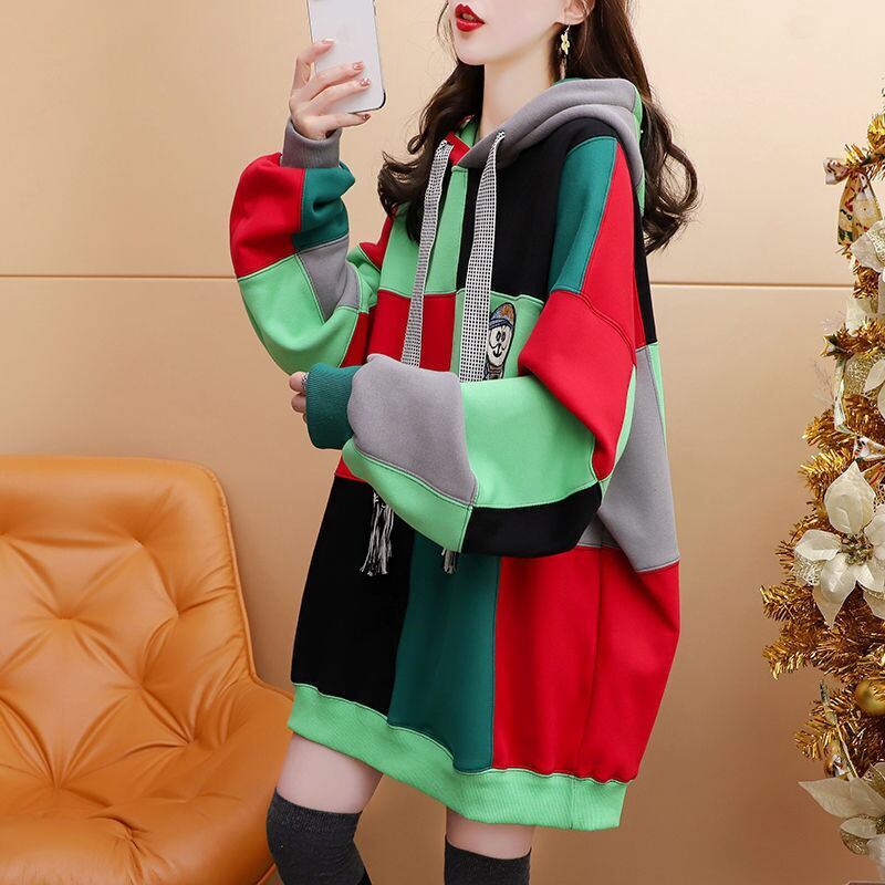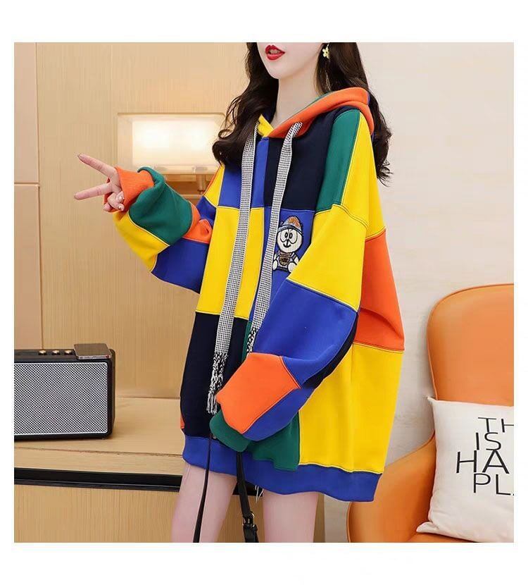 主役級切り替えカラーマッチングパーカー全2色裏起毛トップス <ins-4446>