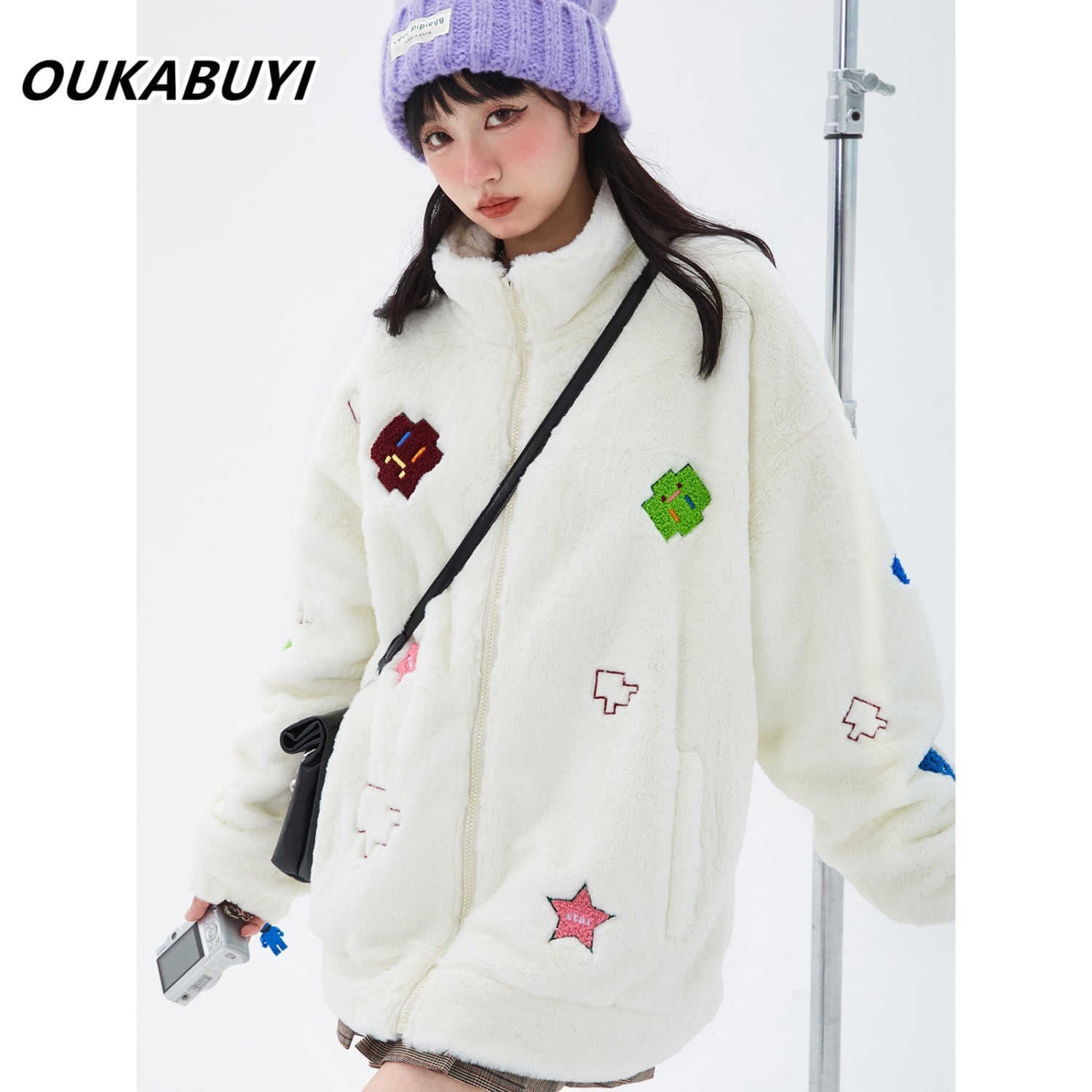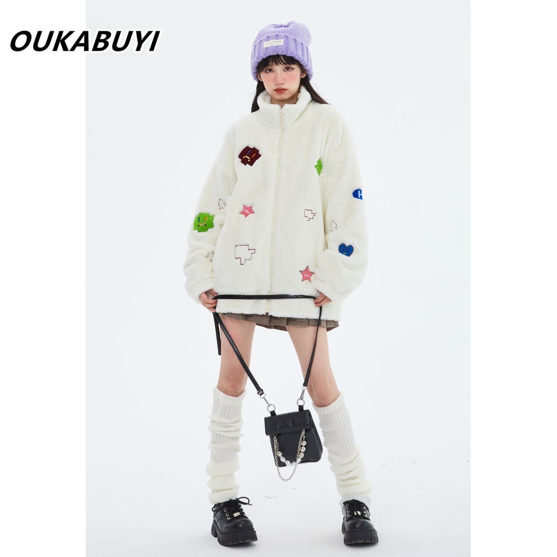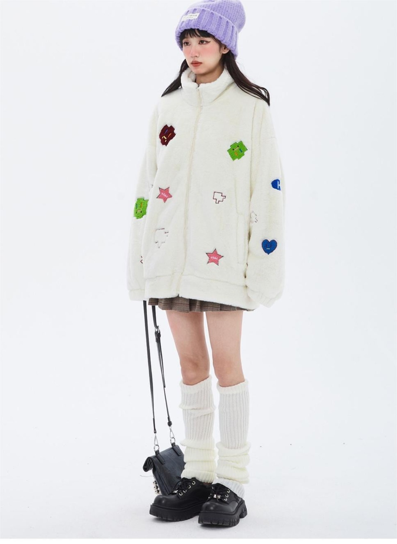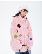 質感のいい刺ロゴ ユニセックス もこもこボア厚手ジャケット全2色<ins-4439>