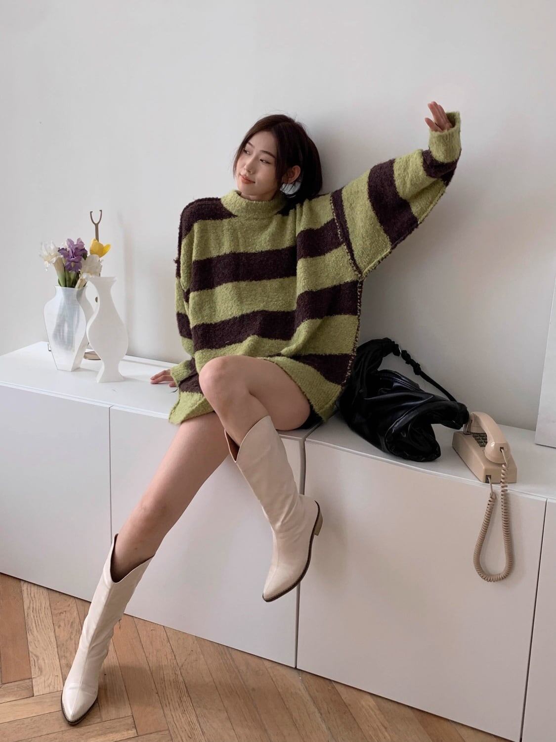 新作 ボーダー柄オーバーサイズ ニットセーター<ins-4432>
