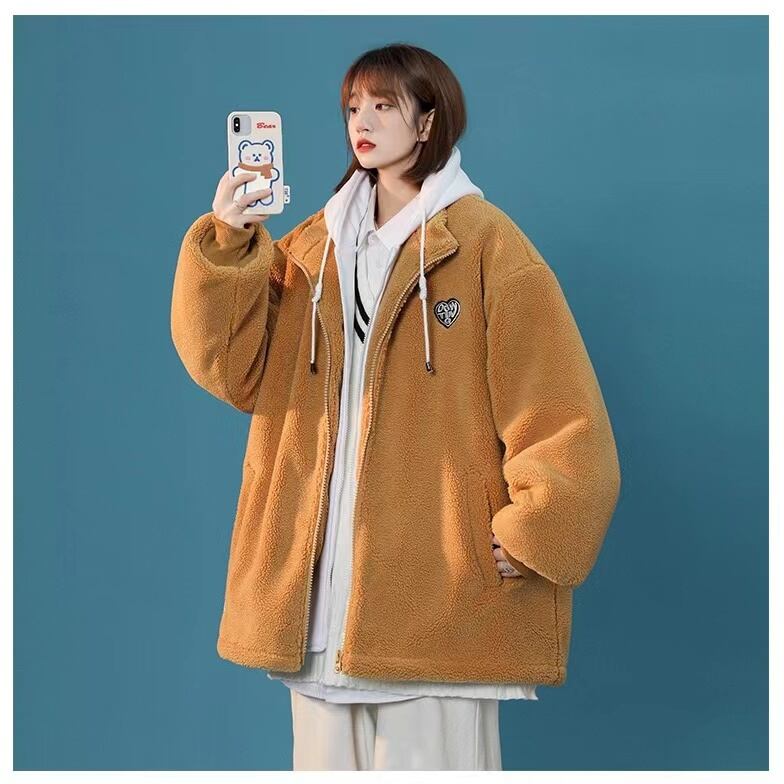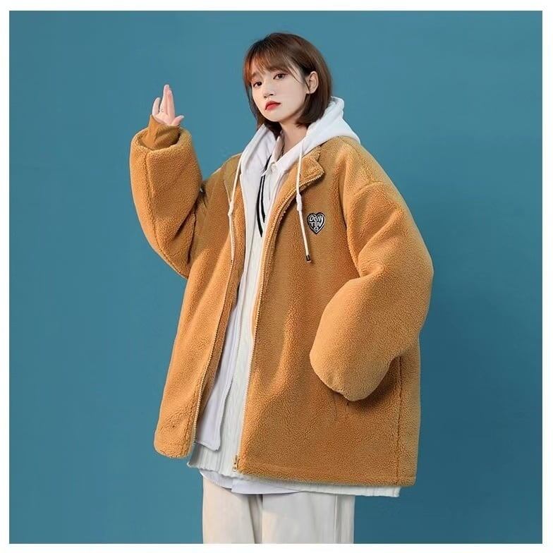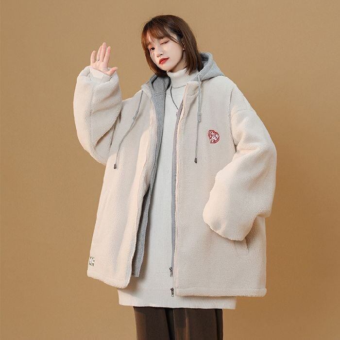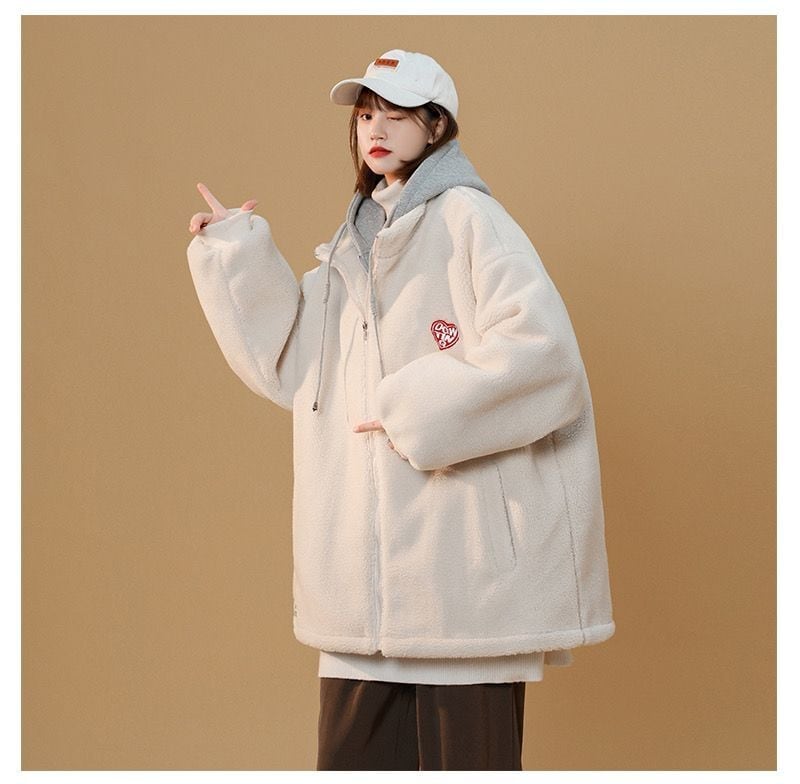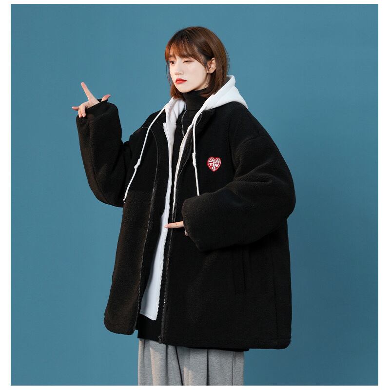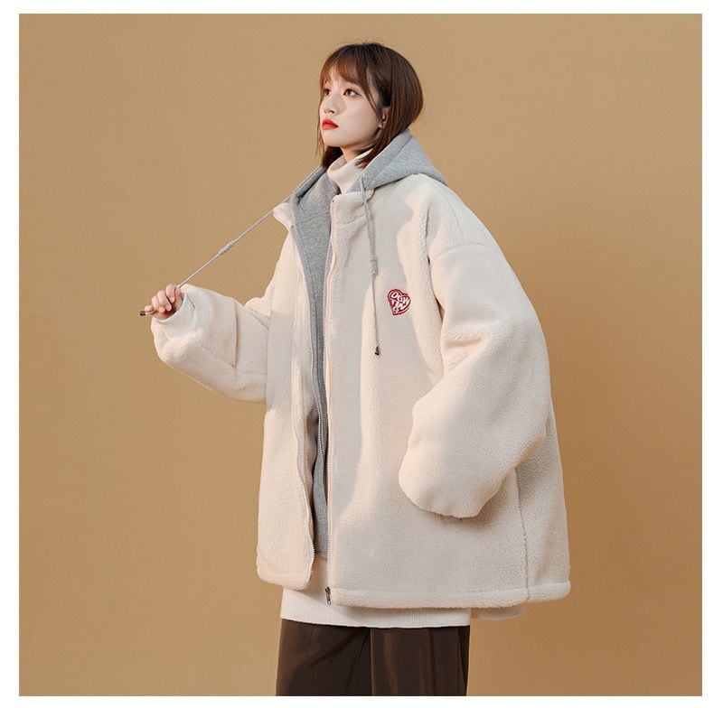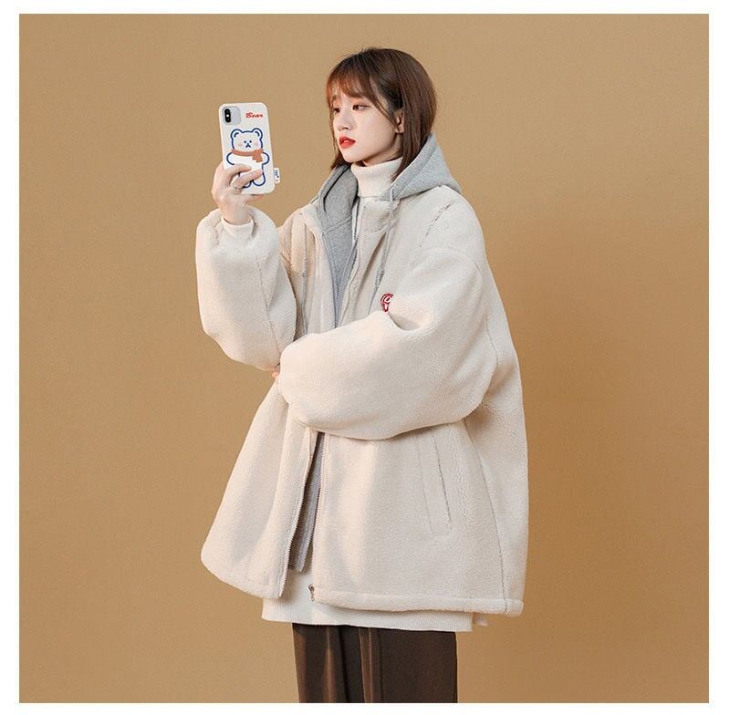 超人気 レイヤード風 厚手フード付きボアフルジップパーカー全3色<ins-4436>