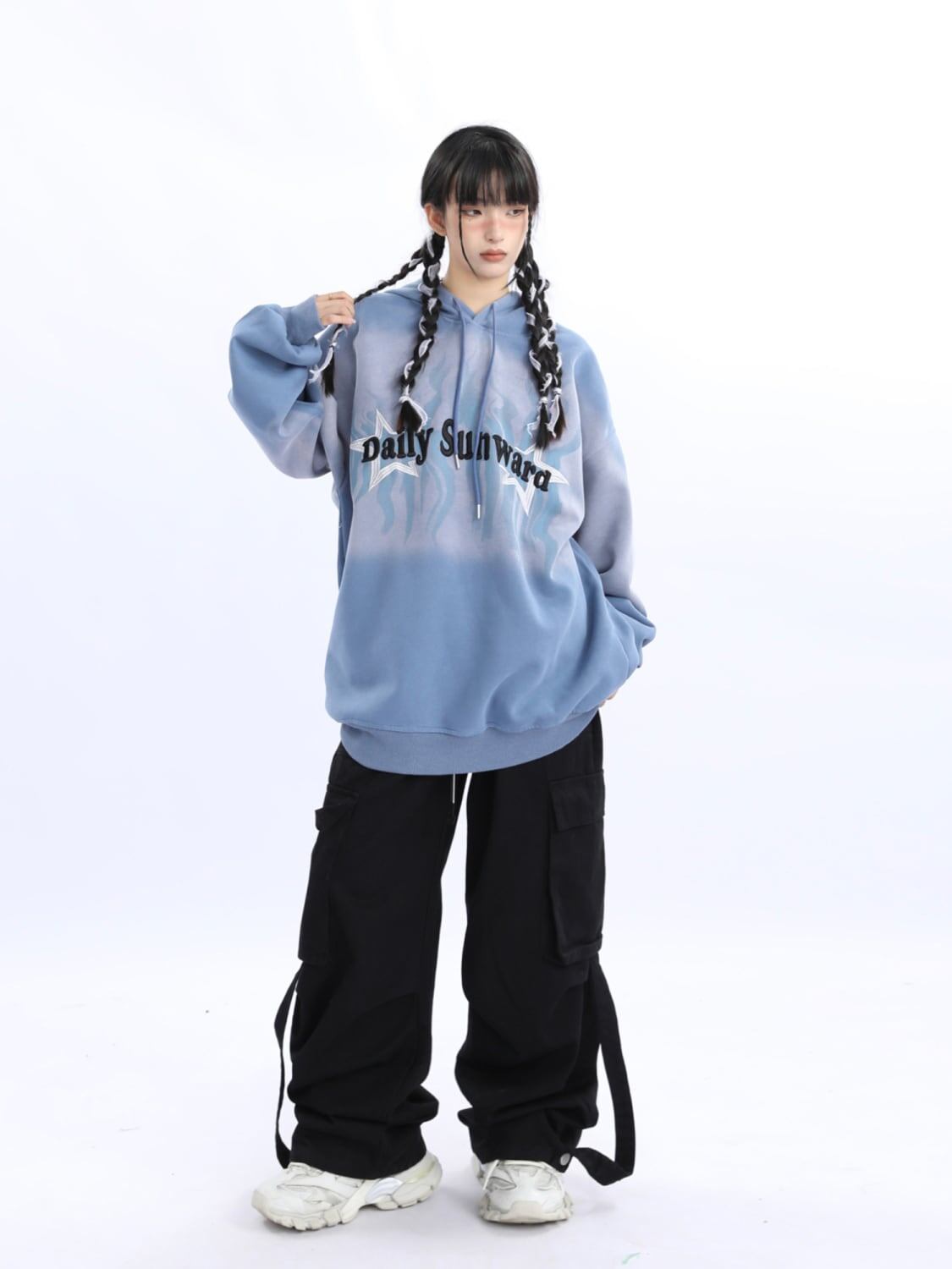 見逃し禁止グラデーションフード付きパーカー裏起毛全2色トップス<ins-4435>