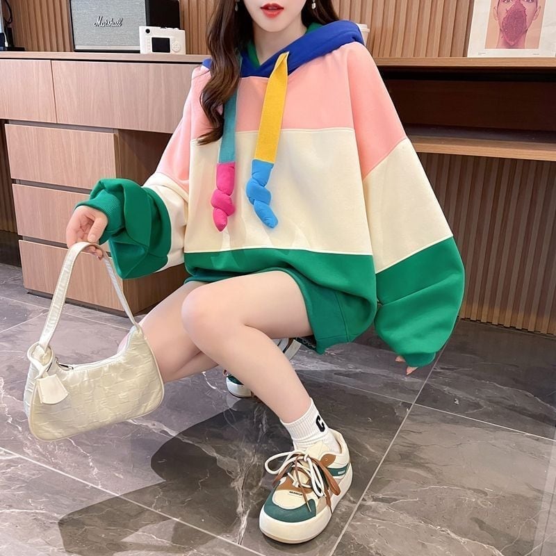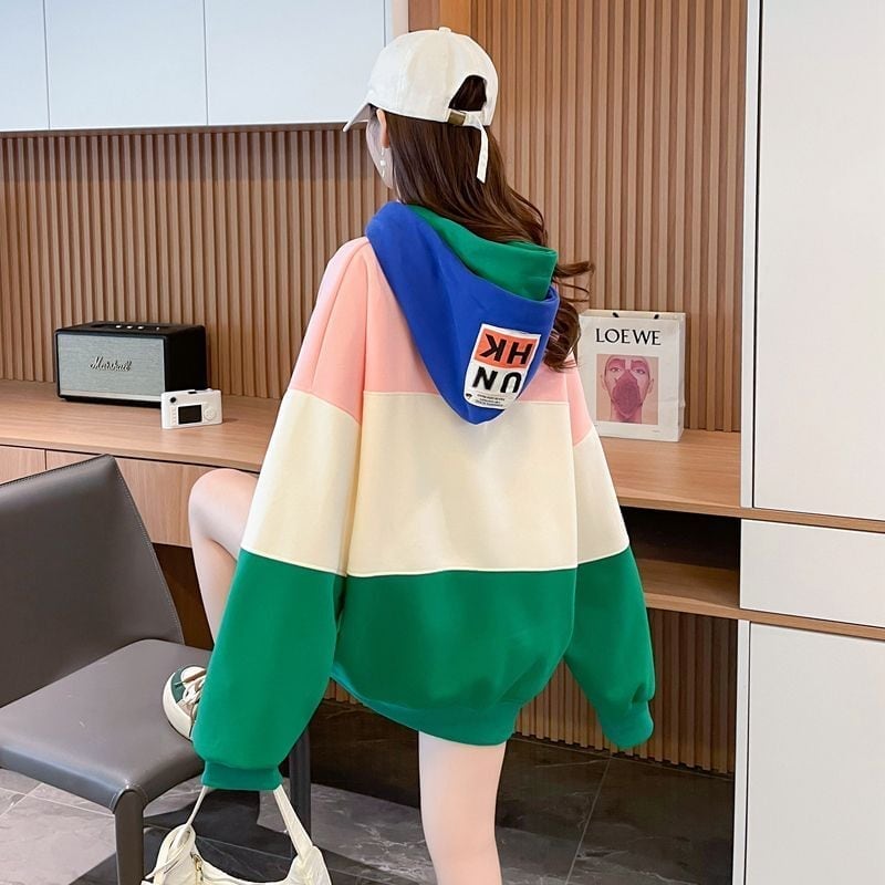 大人可愛いカラーマッチングフード付き パーカー全二色トップス<ins-4288>