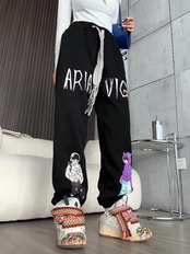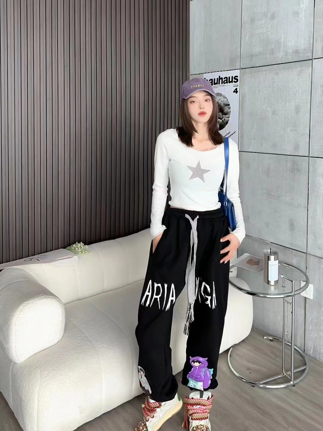 韓国系ビックロゴ裏起毛ジョガーパンツ2色あり <ins-4417>
