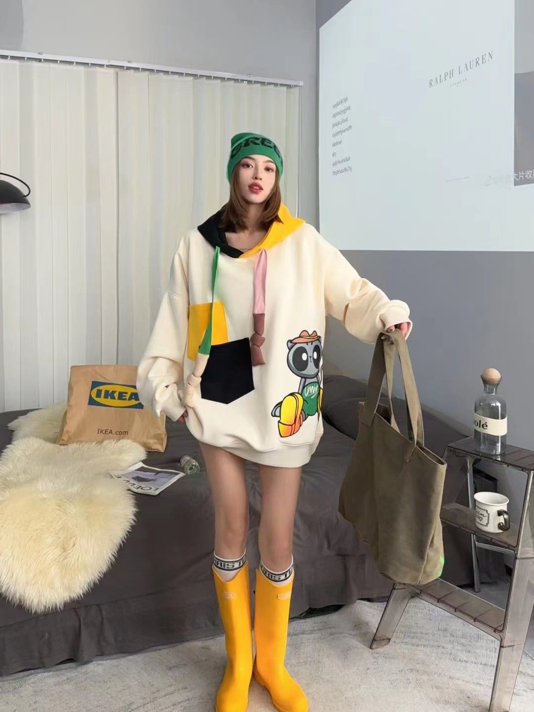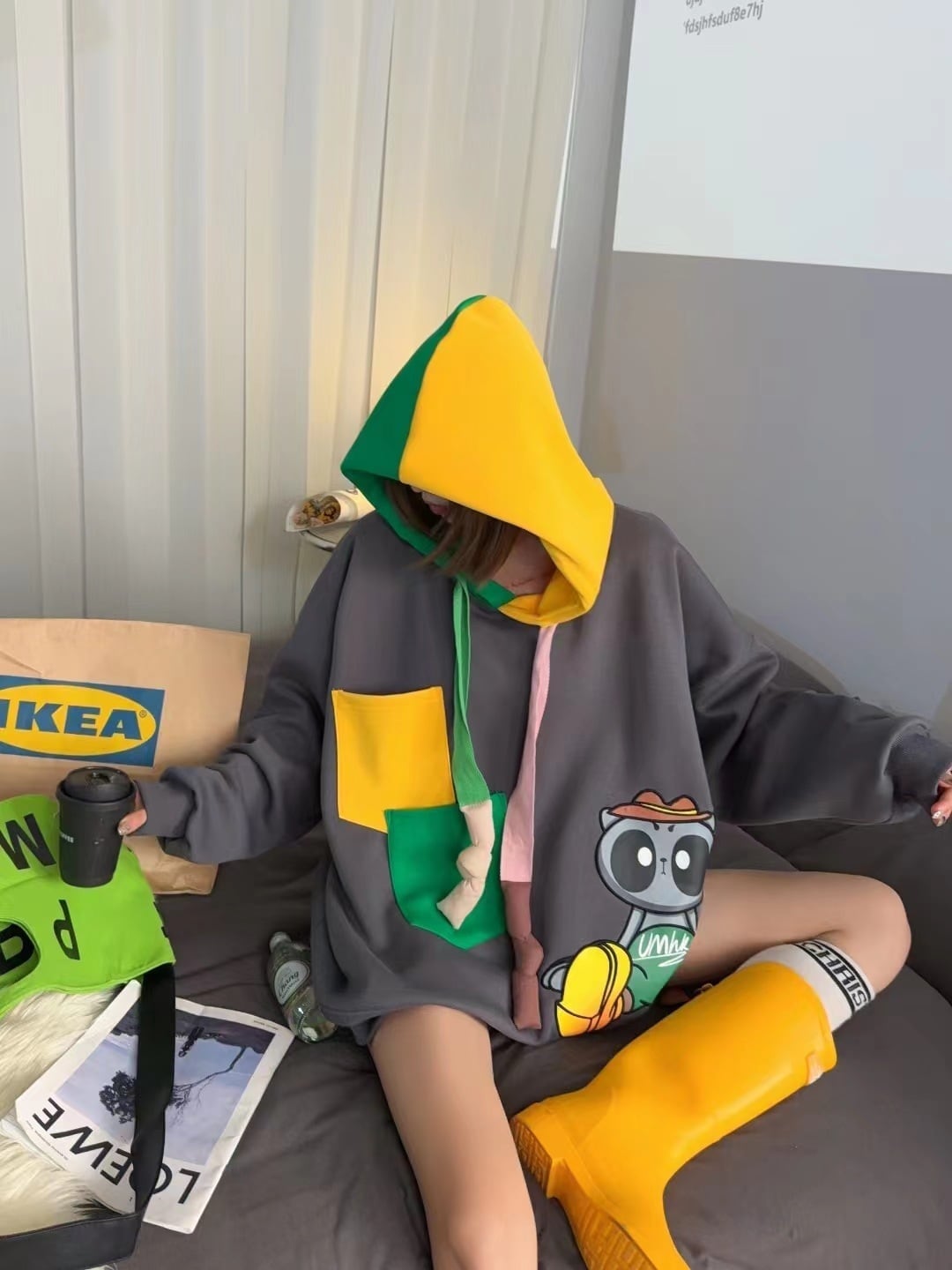主役級 ポケット裏起毛オーバーサイズ カラーマッチングパーカー全二色<ins-4416>